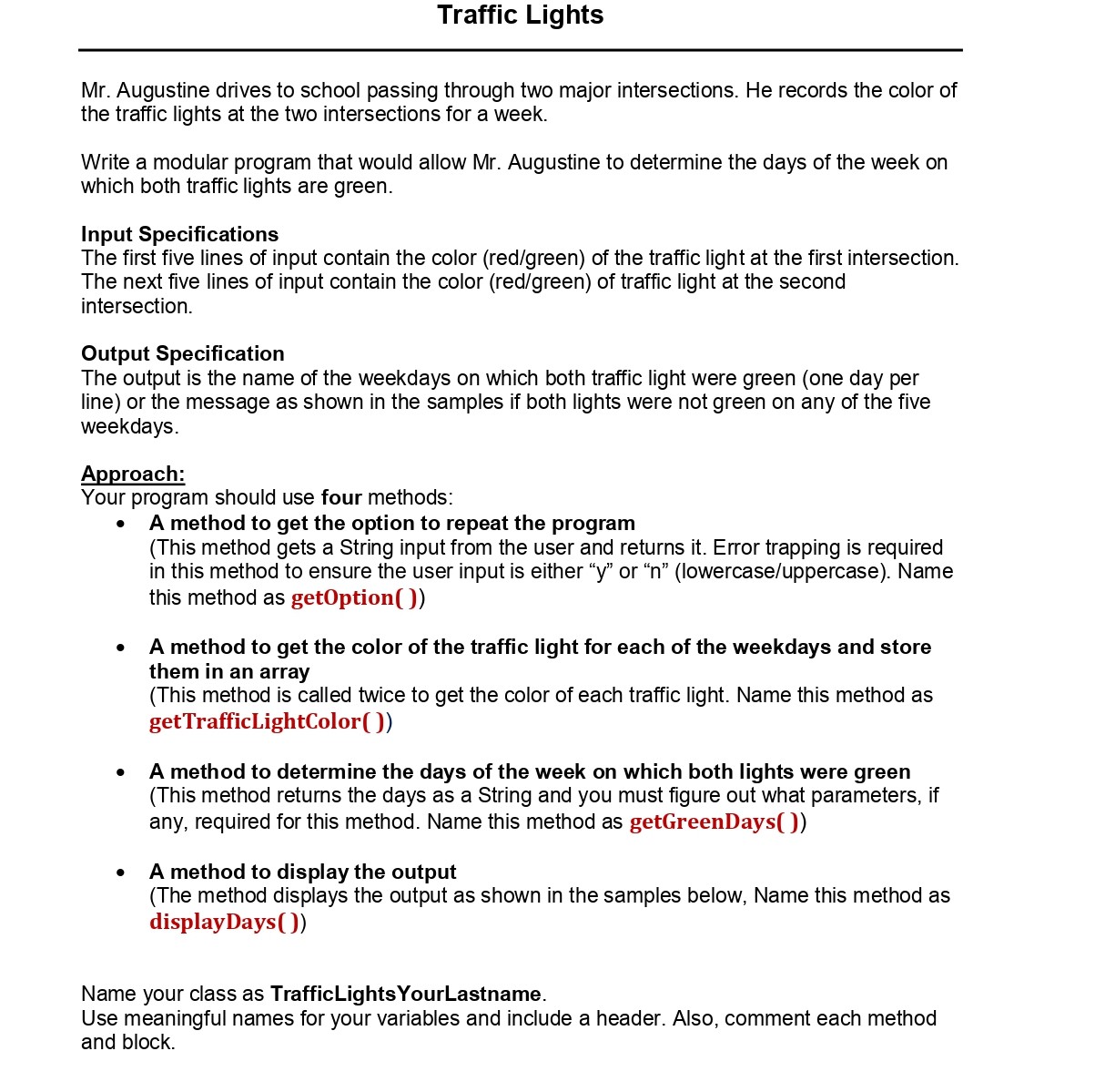 Traffic Lights Mr. Augustine drives to school passing through two ...
