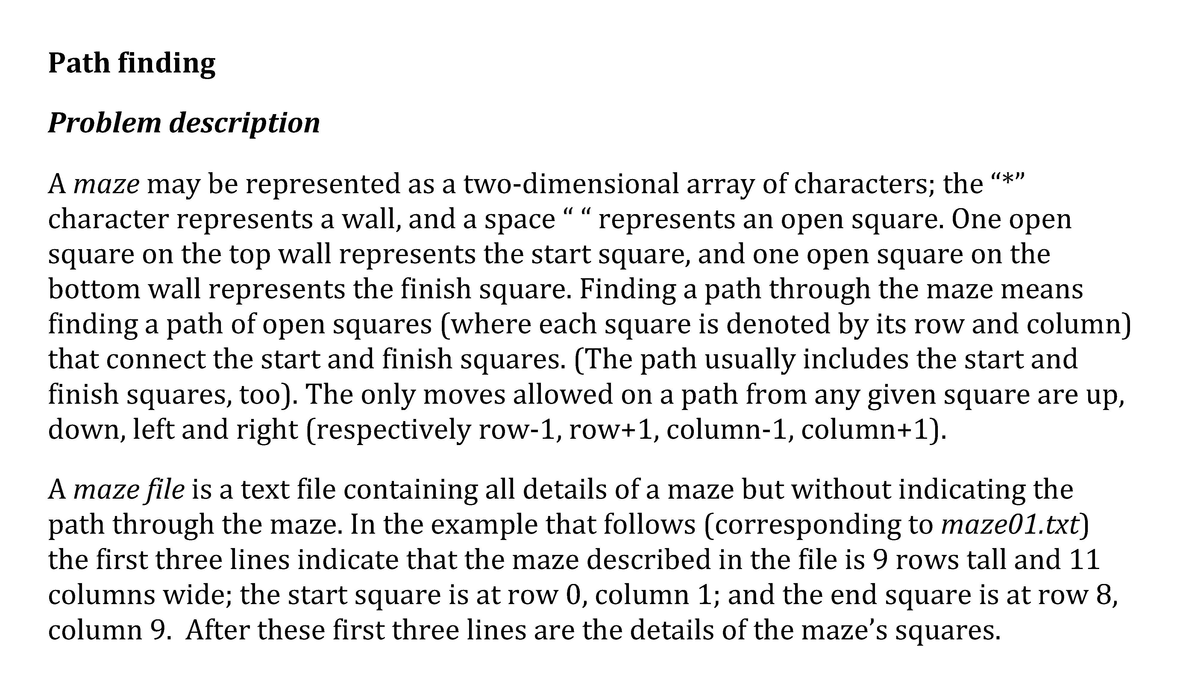 Path finding Problem description A maze may be represented as a ...