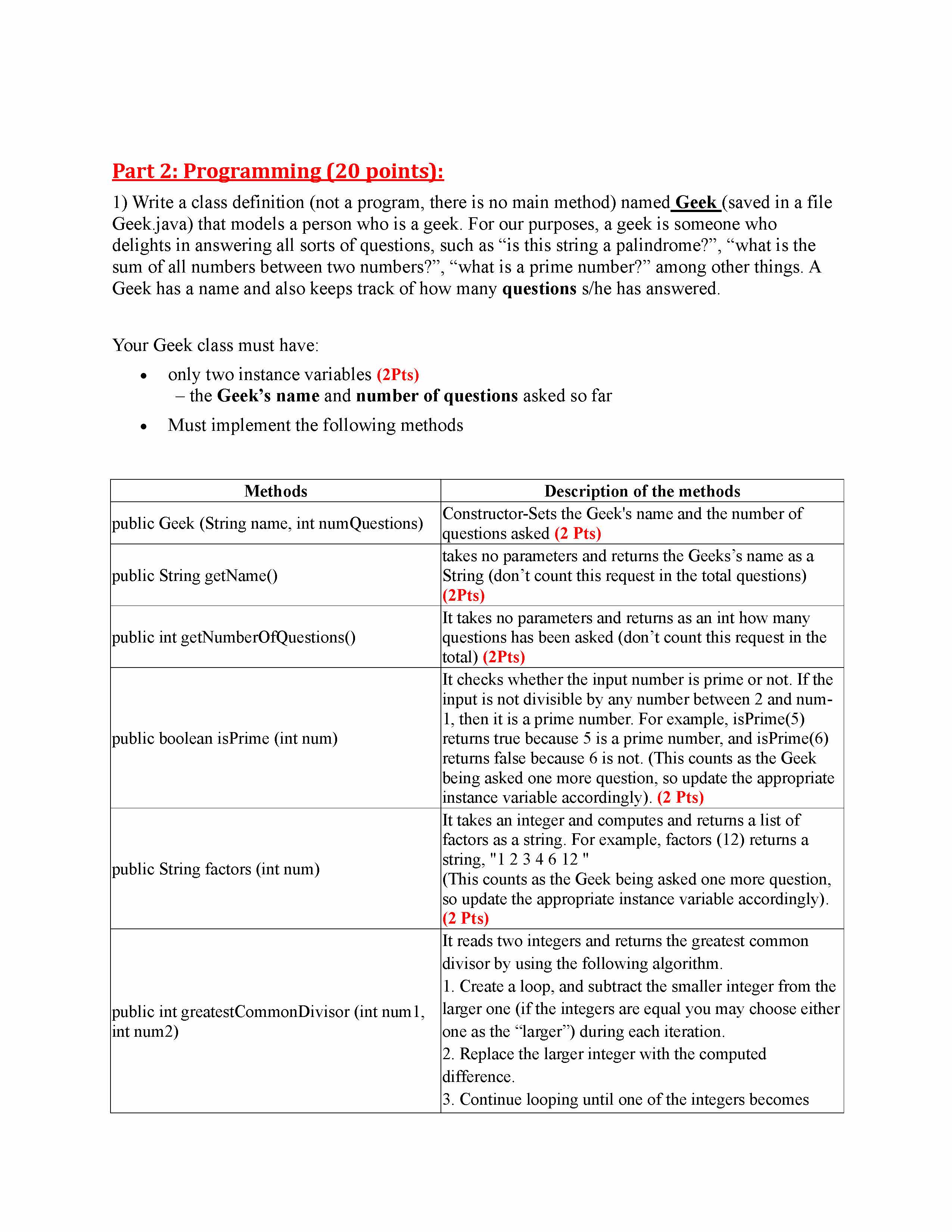 Part 2: Programming (20 points): 1) Write a class definition (not...