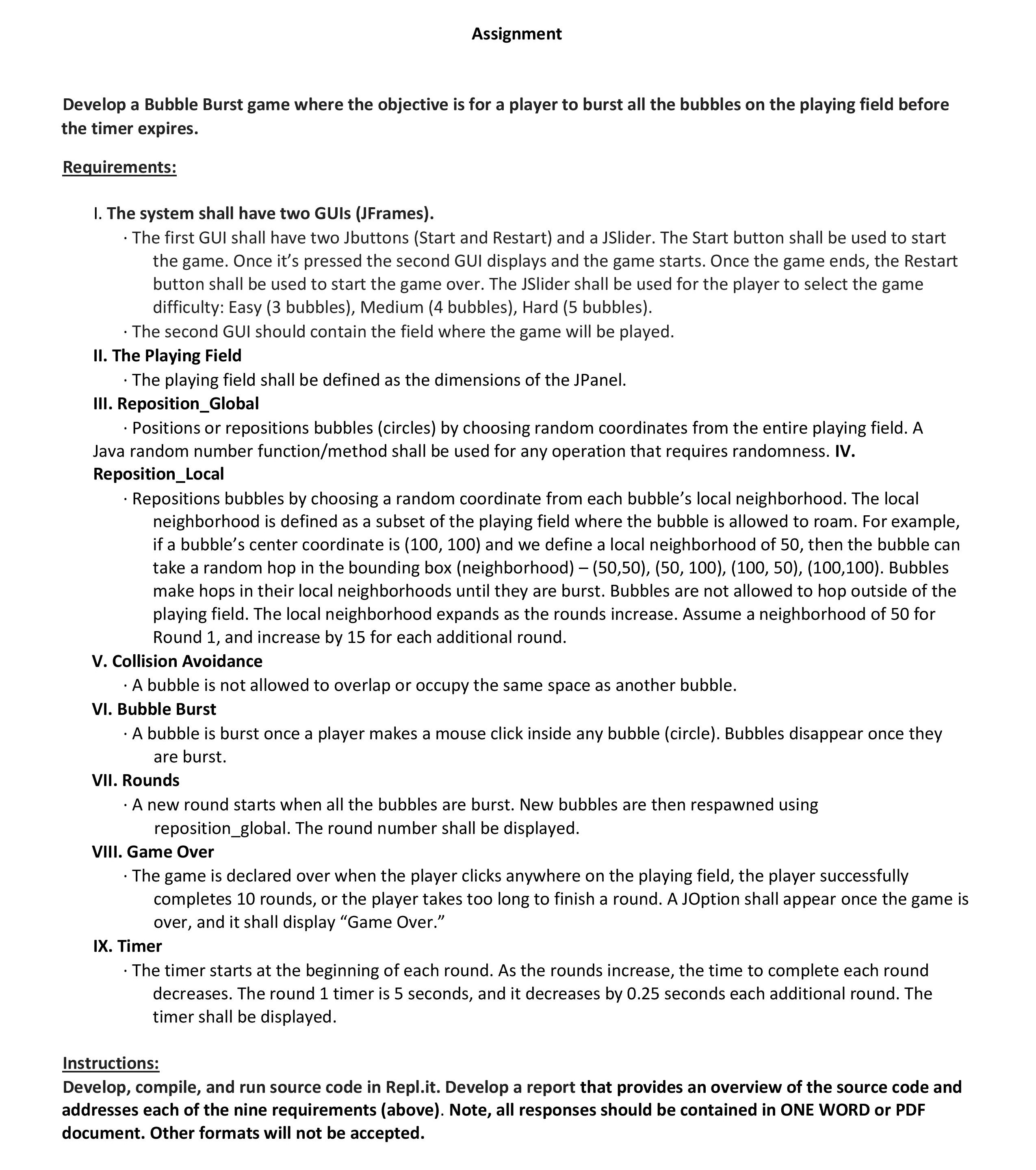 Assignment Develop a Bubble Burst game where the objective is for ...