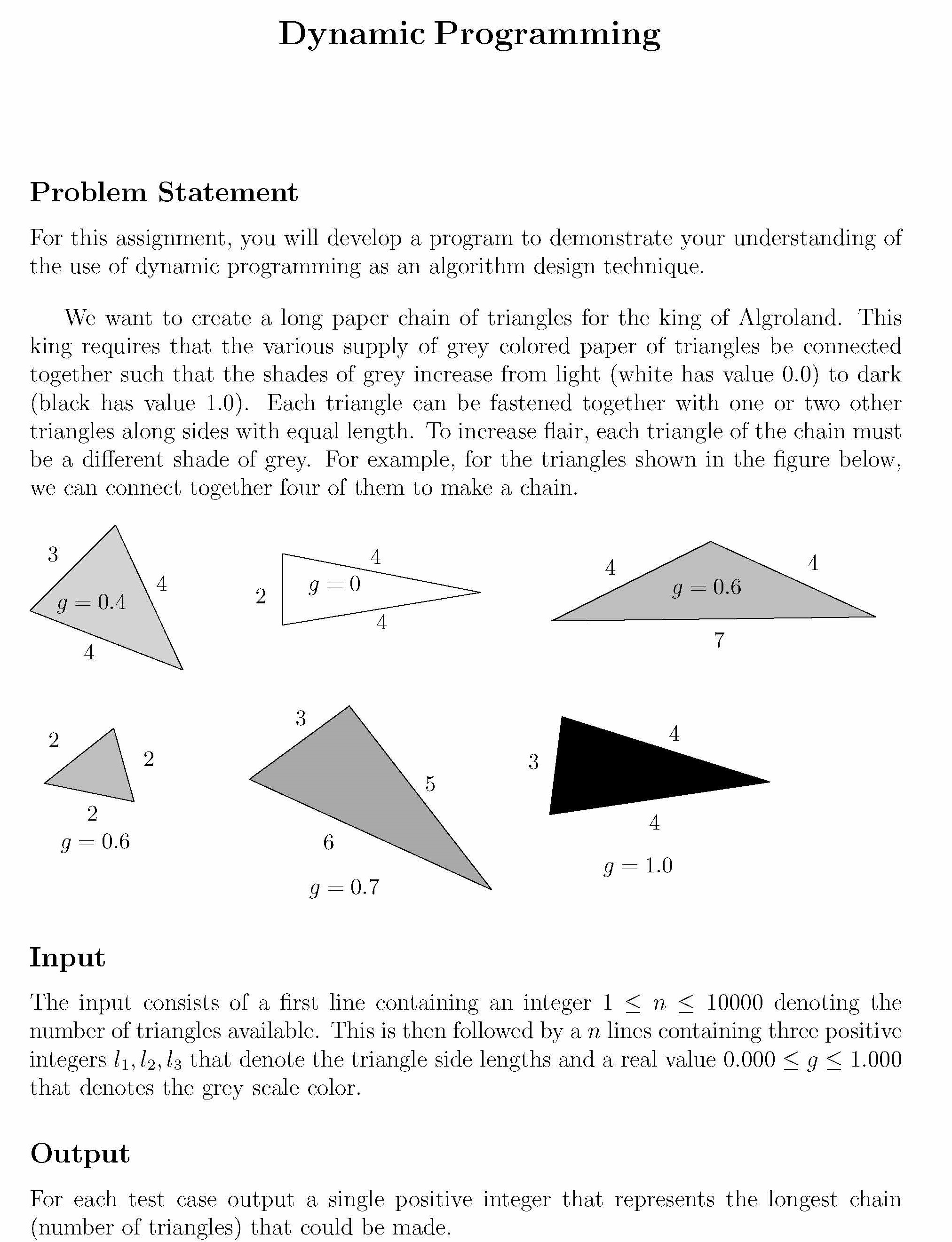 Dynamic Programming Problem Statement For this assignment, you wi...