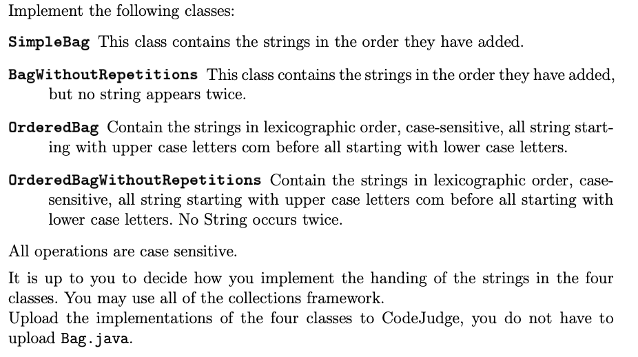 Implement the following classes: SimpleBag This class contains the...
