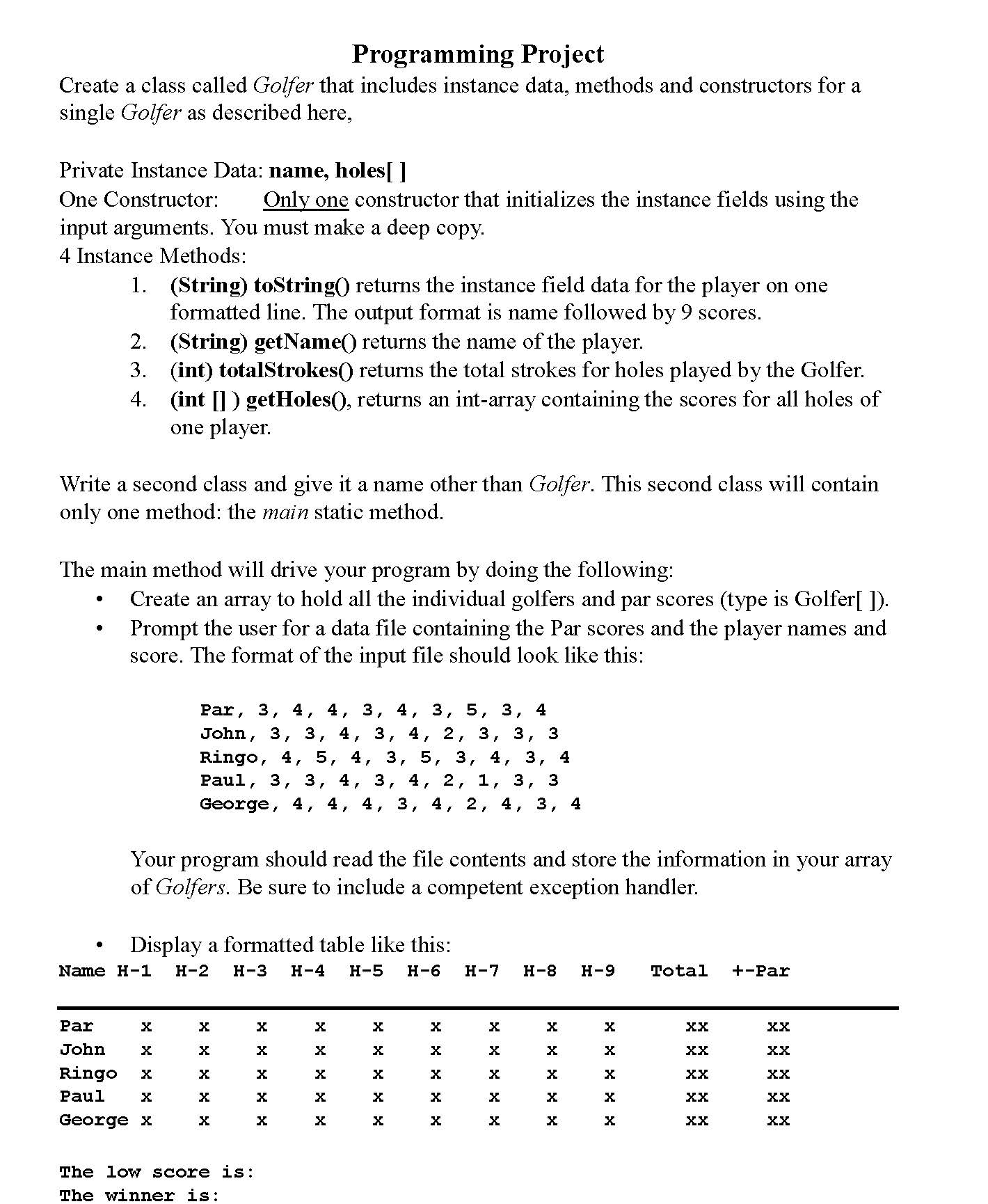 Programming Project Create a class called Golfer that includes ins...