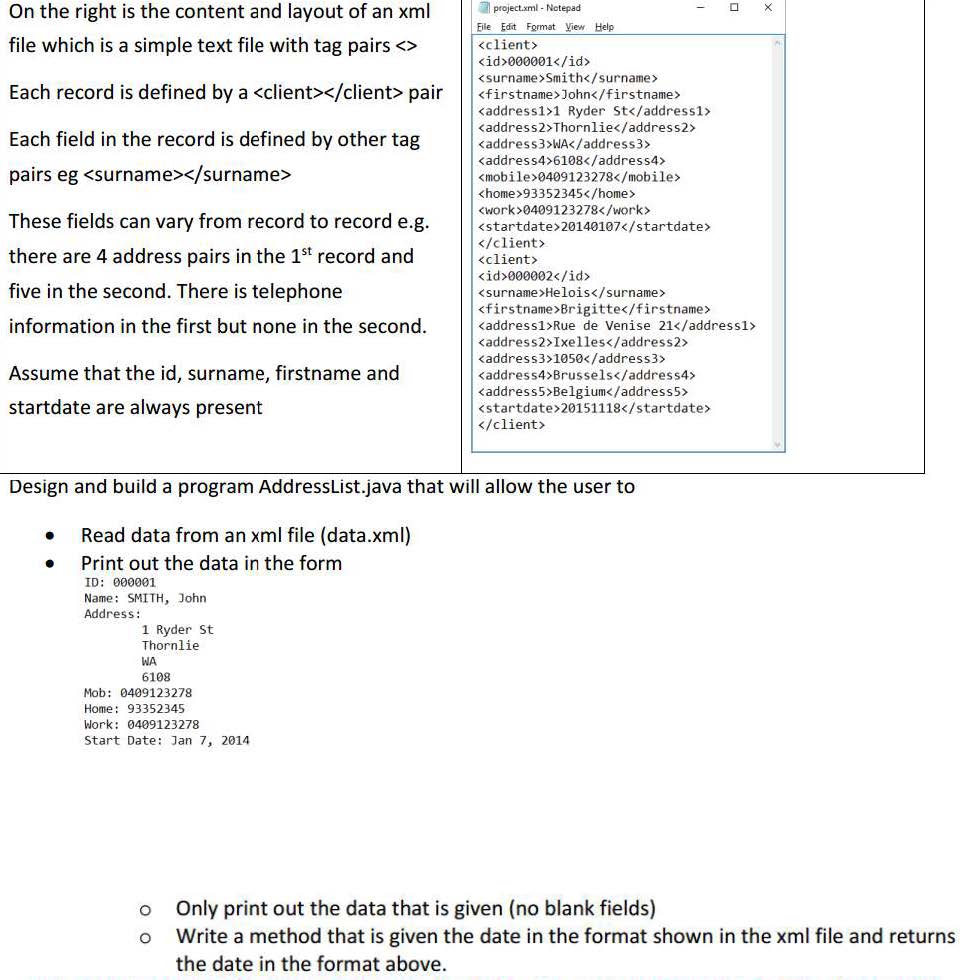 On the right is the content and layout of an xml project.xml Notep...