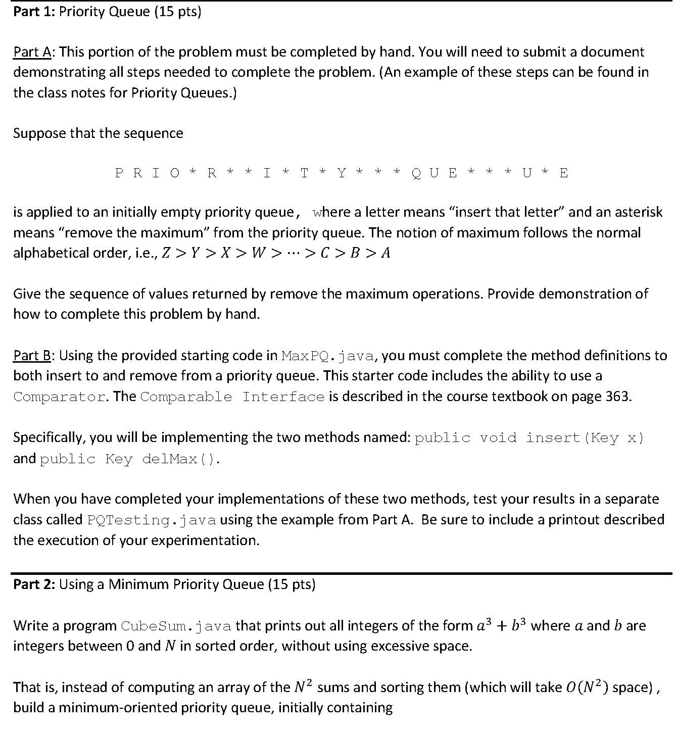 Part 1: Priority Queue (15 pts) Part A: This portion of the proble...