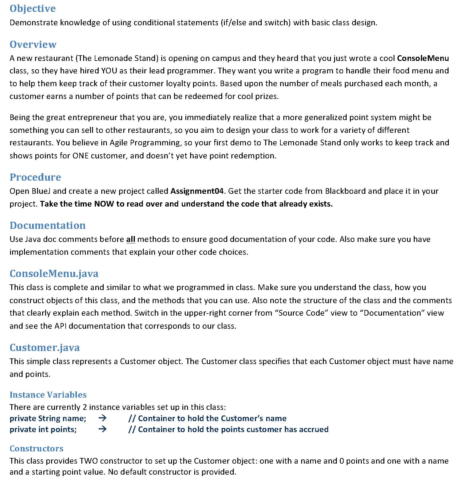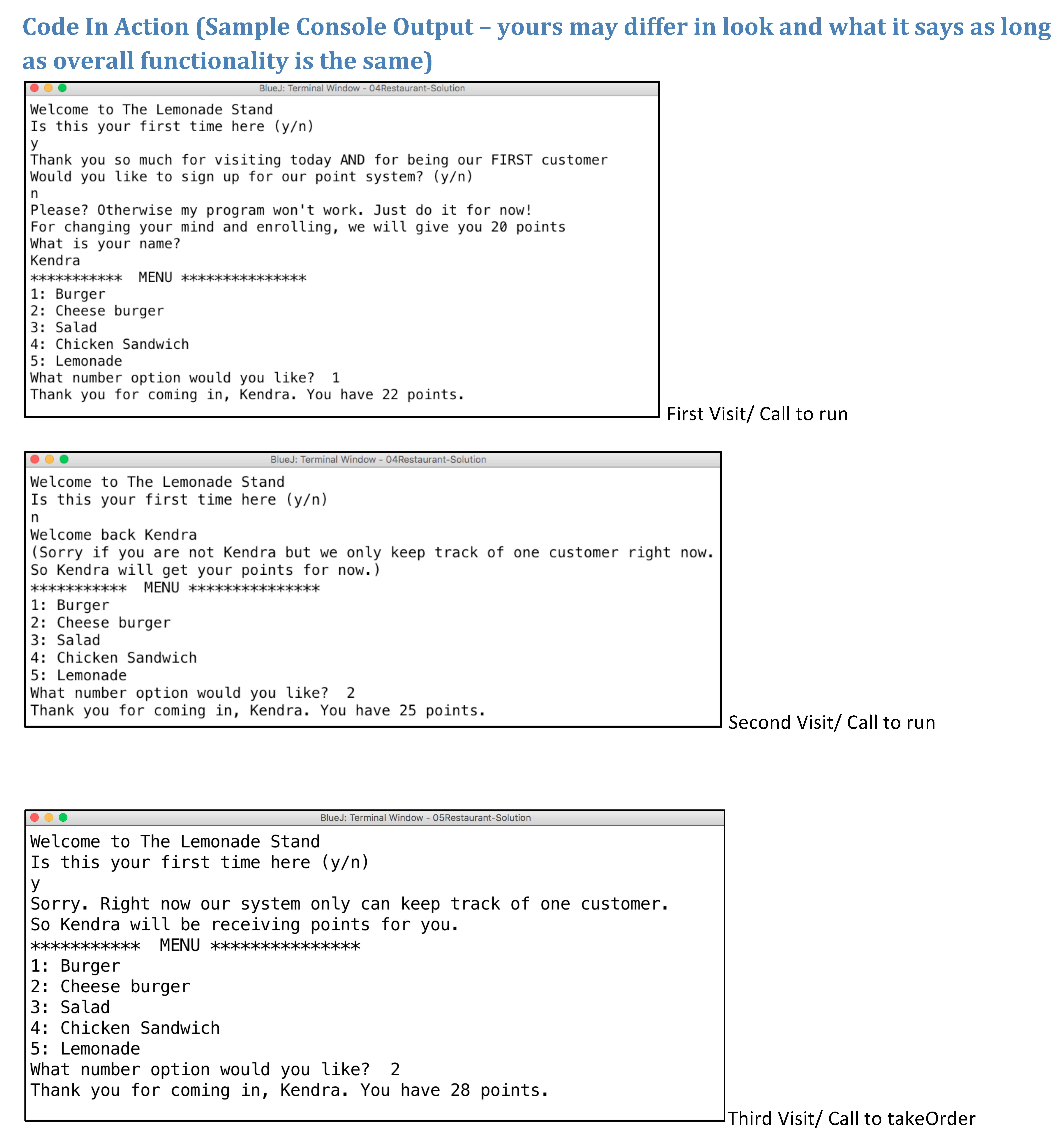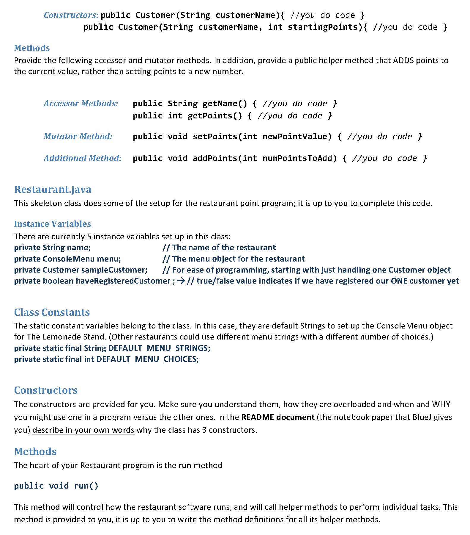 Restaurant Point System Objective Demonstrate knowledge of using...