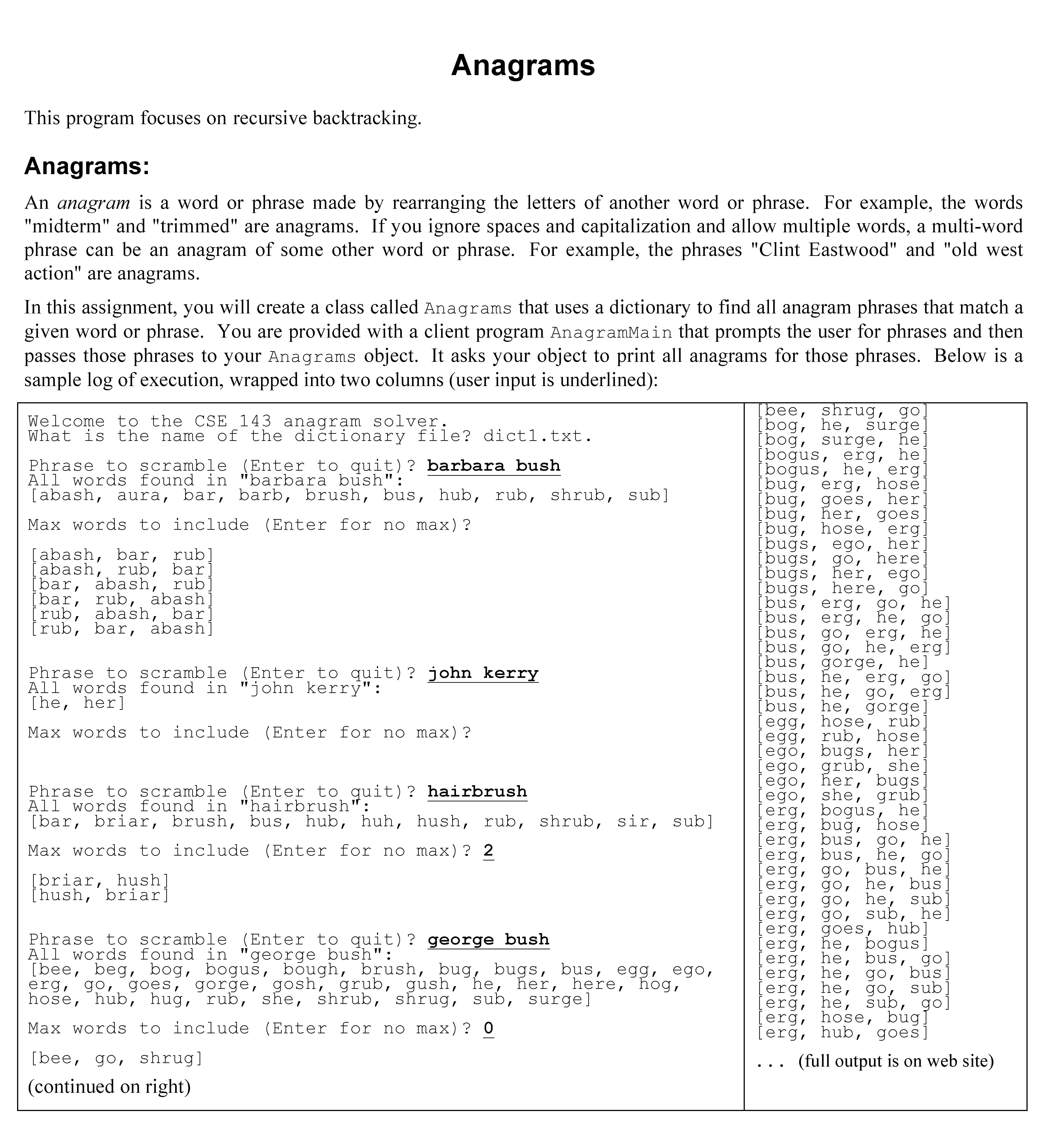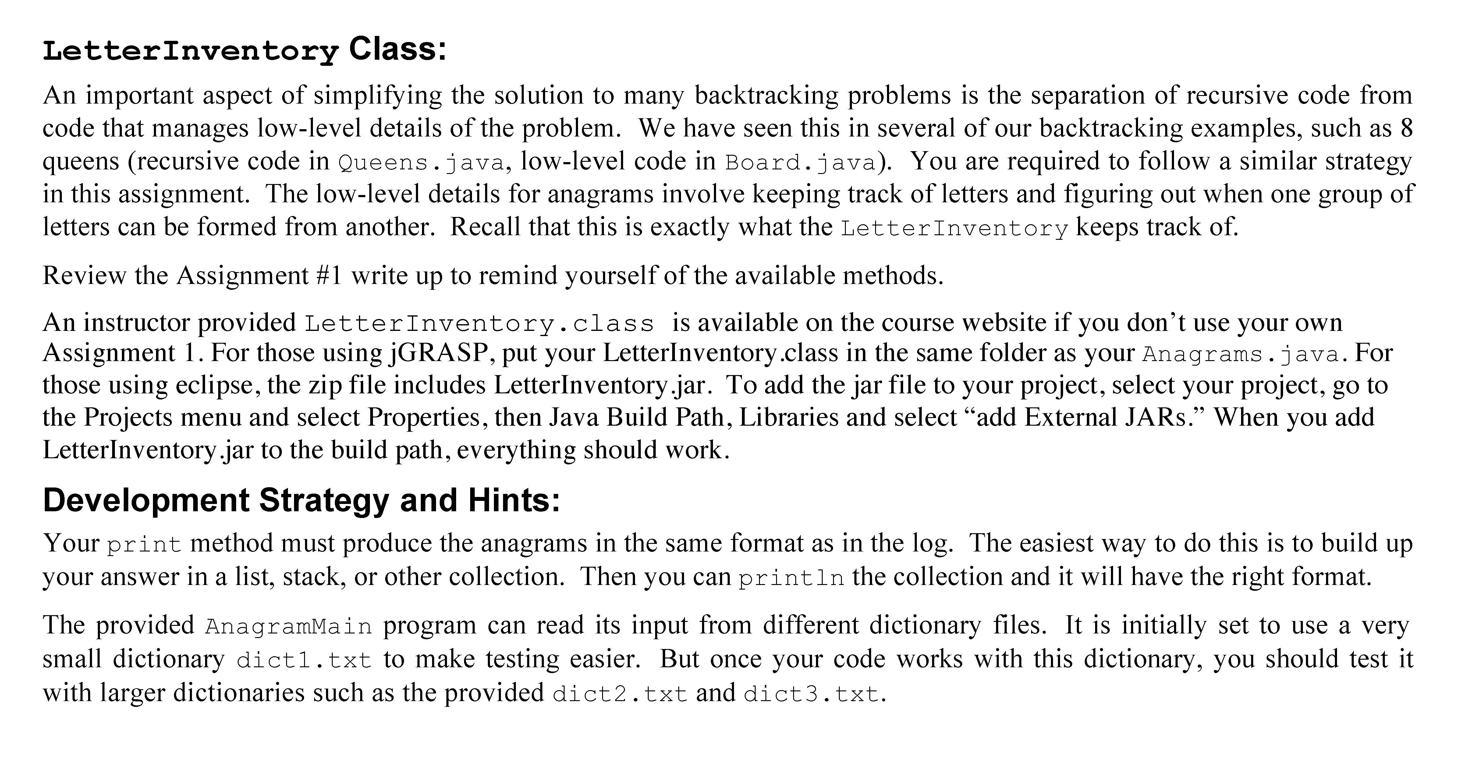 Anagrams This program focuses on recursive backtracking. Anagrams...