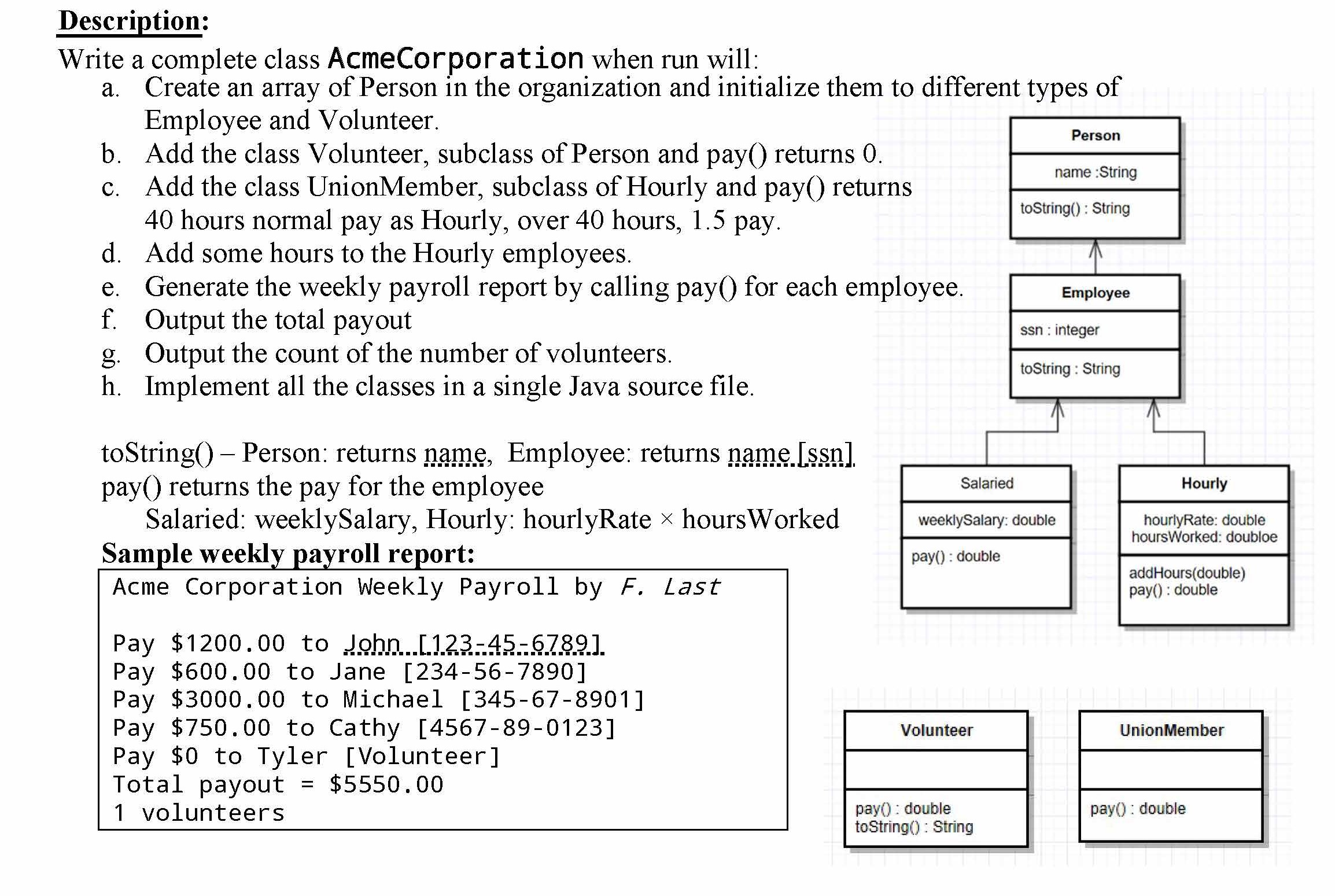 Description: Write a complete class AcmeCorporat: ion when run wil...