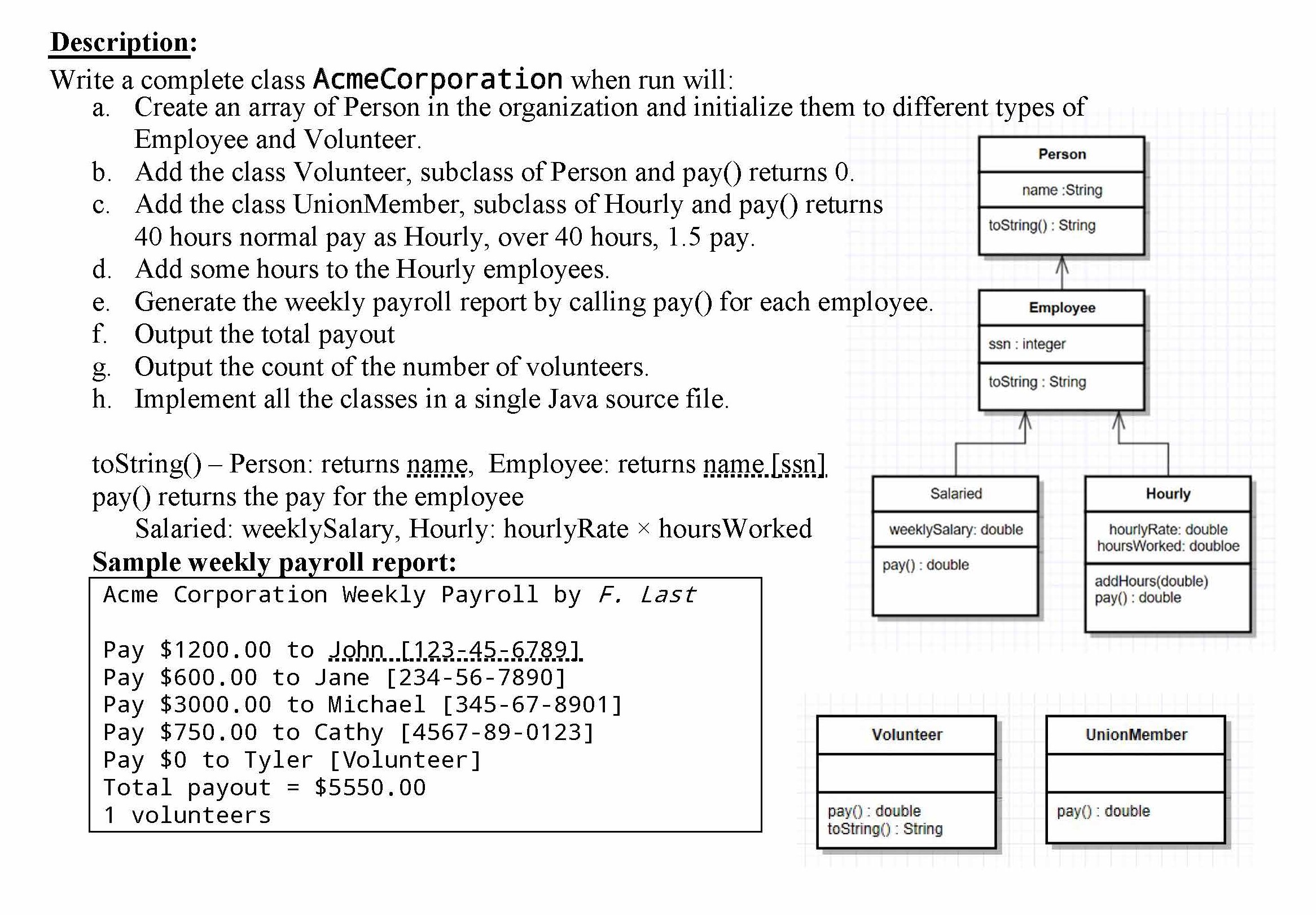 Description: Write a complete class AcmeCorporat: ion when run wil...