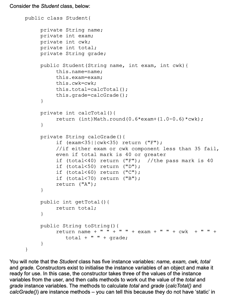 Consider the Student class, below: public class Student { private...