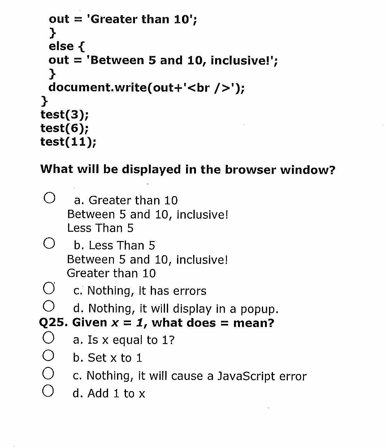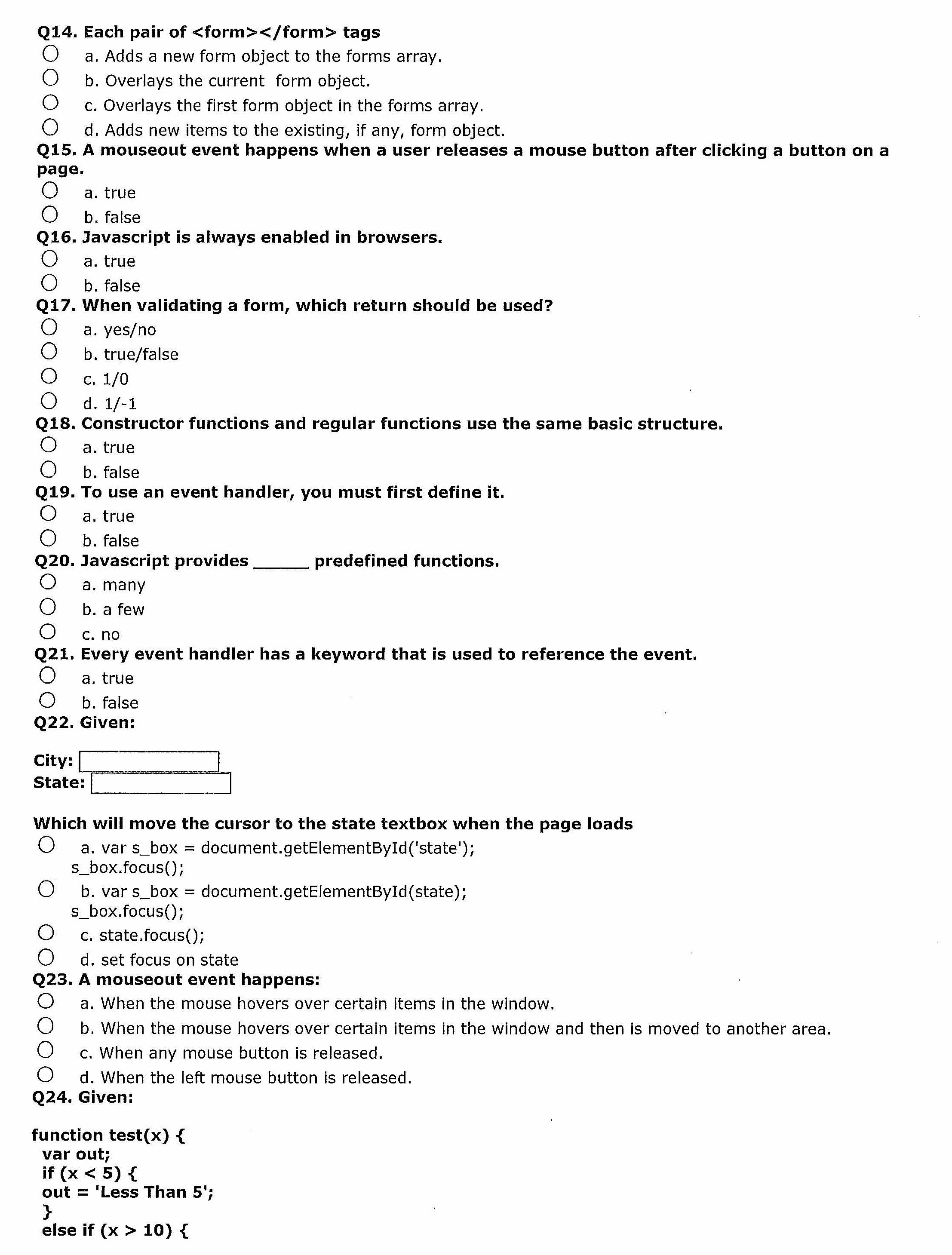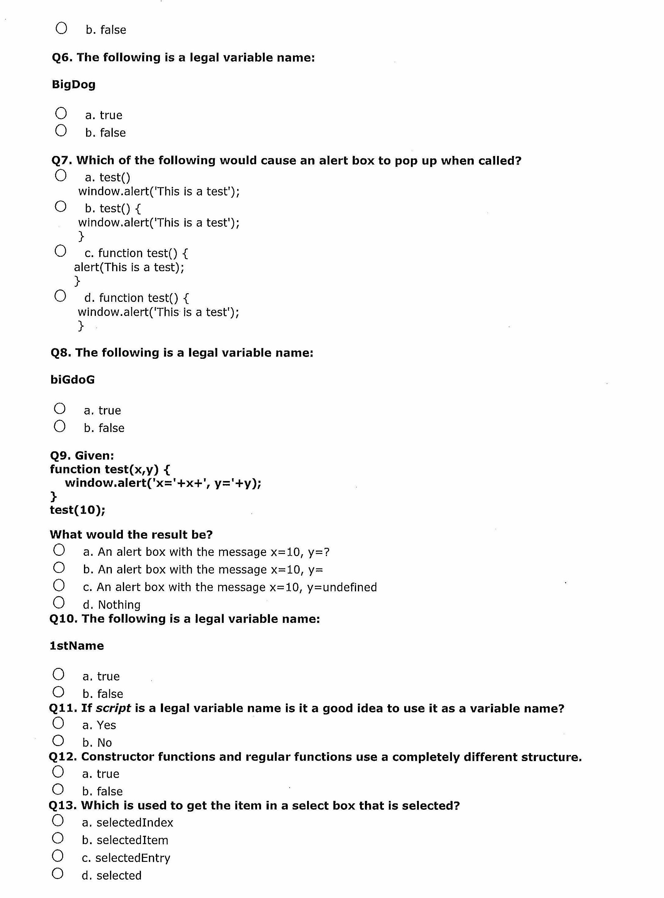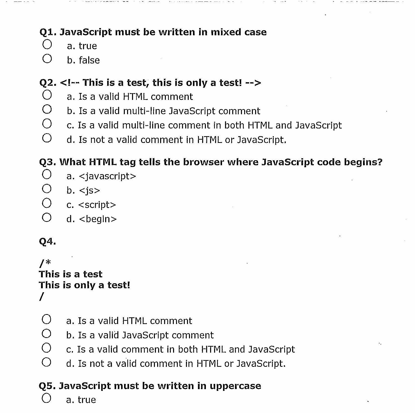 Q1. " JavaScript must be written in mixed case a. true b. fa...