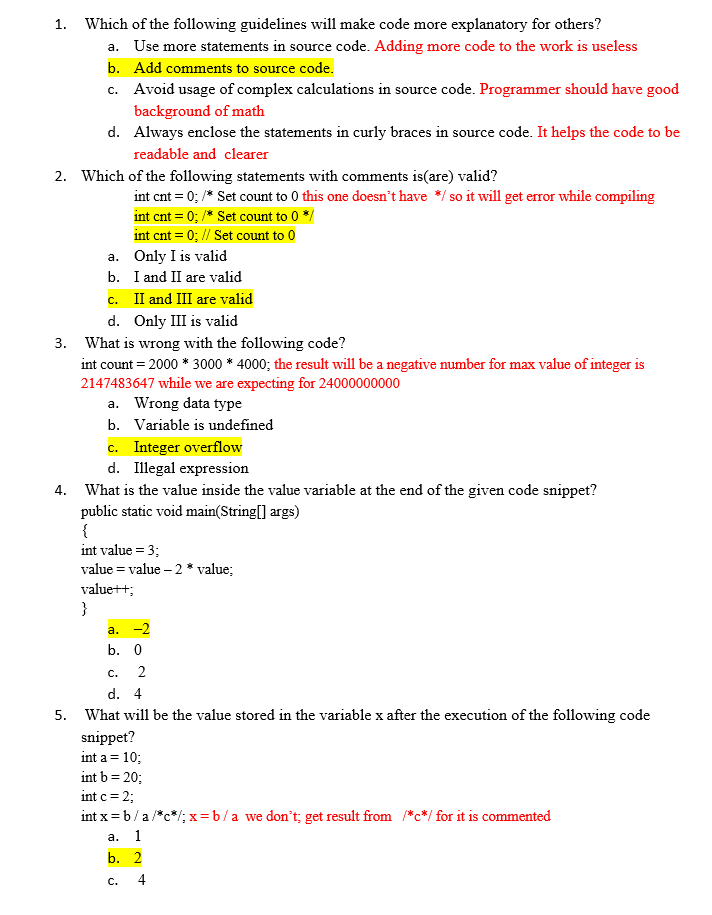 1. Which of the following guidelines will make code more explanator...