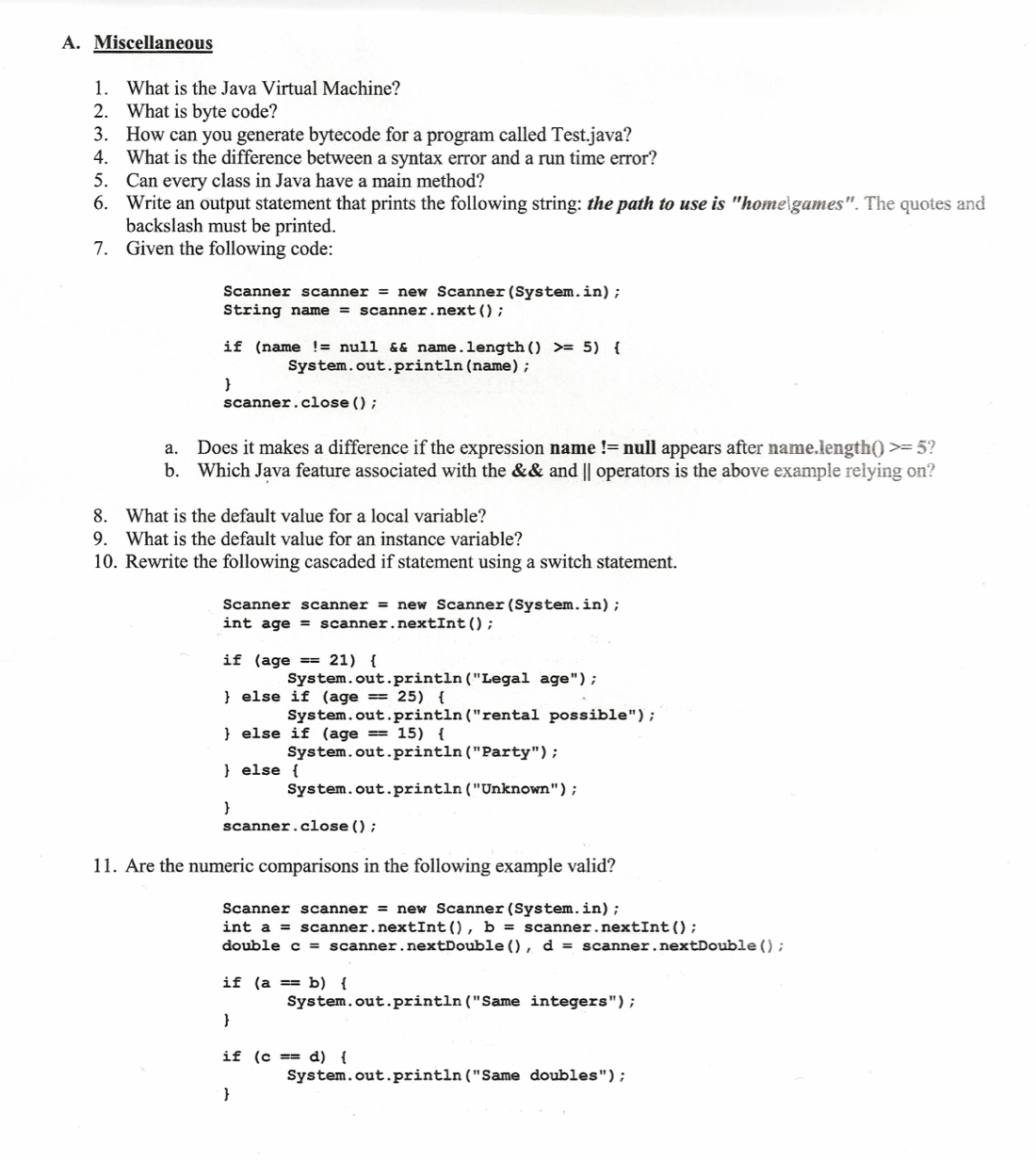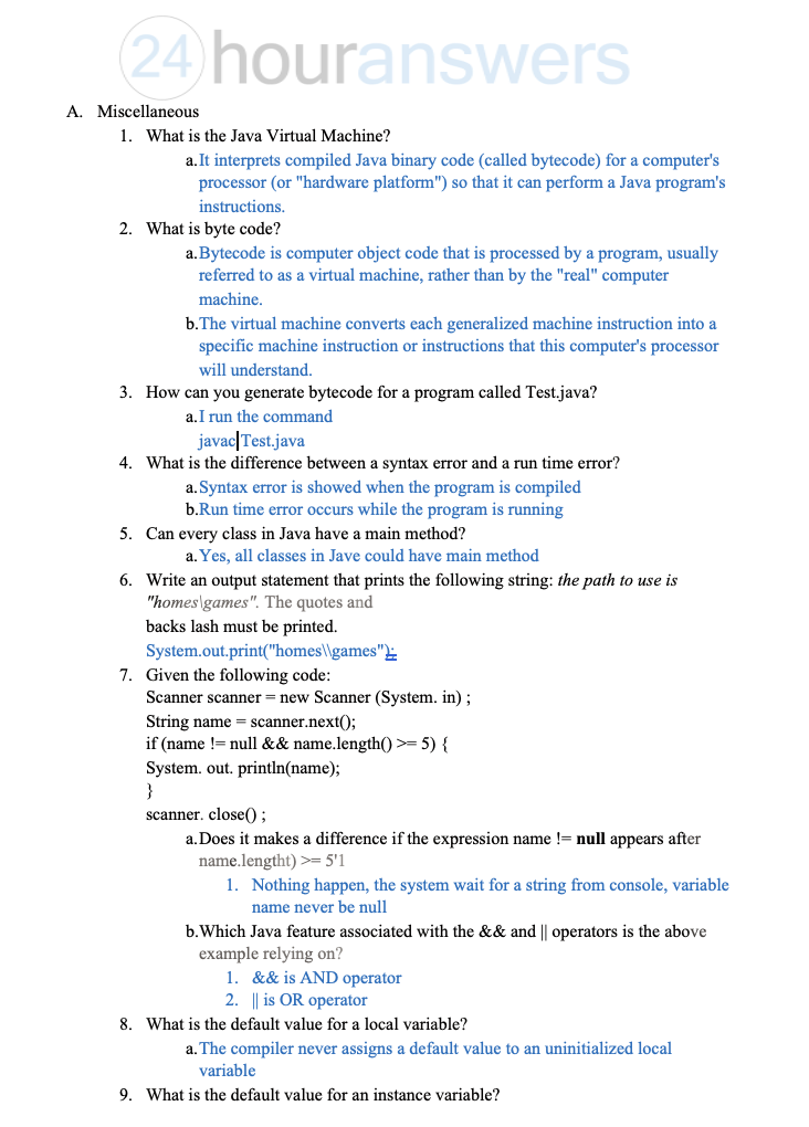 A. Miscellaneous 1. What is the Java Virtual Machine? 2. What is...