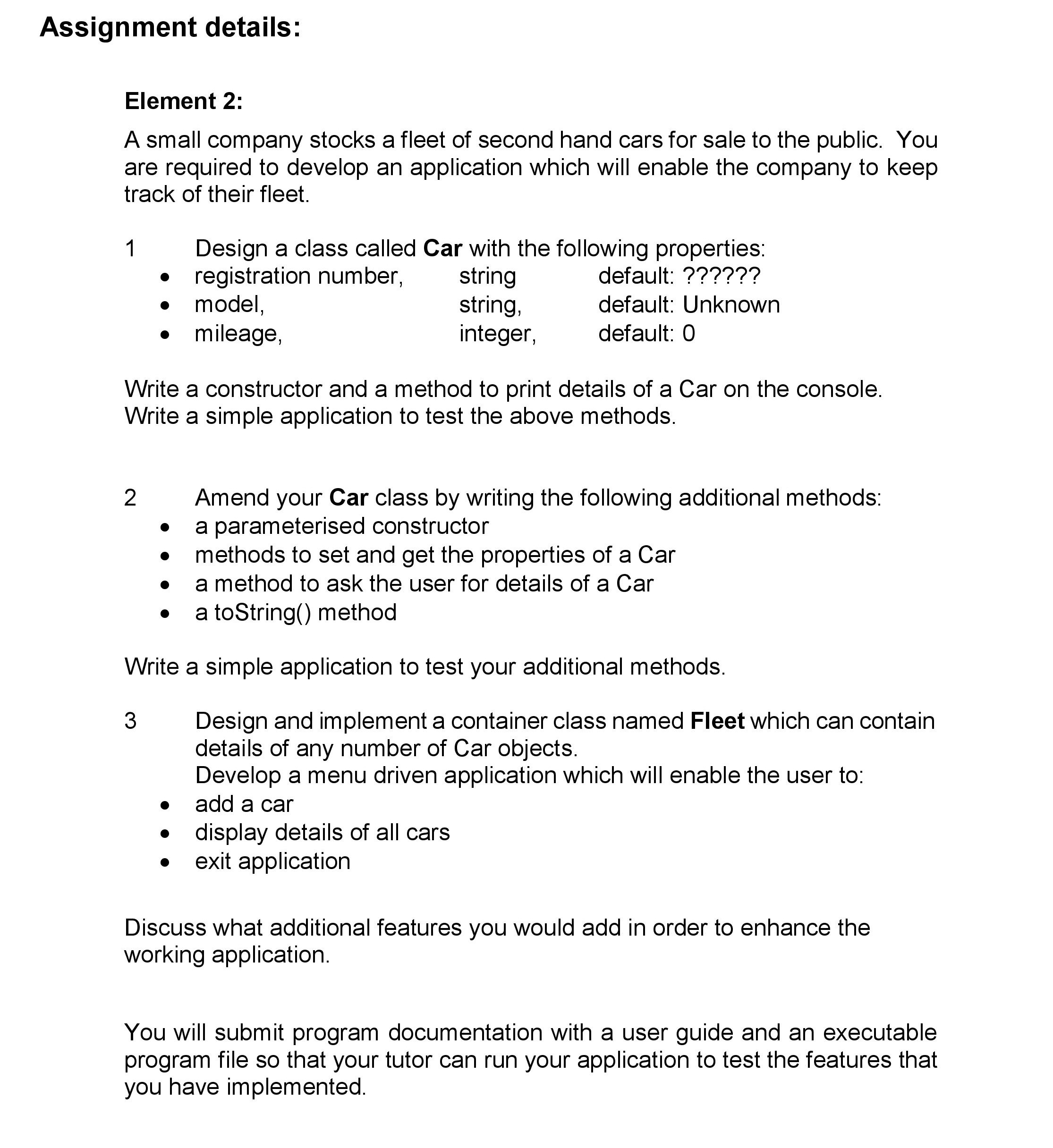 Assignment details: Element 2: A small company stocks a fleet of ...