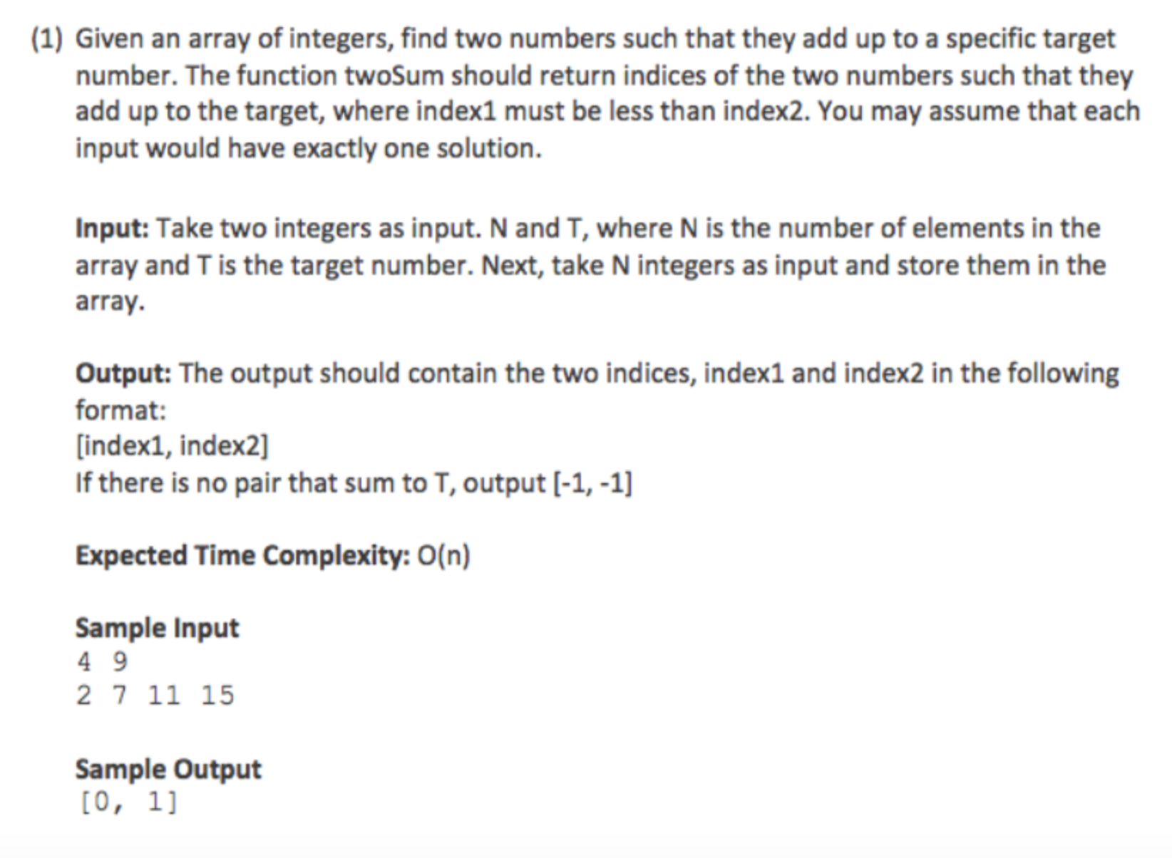 (1) Given an array of integers, find two numbers such that they add...