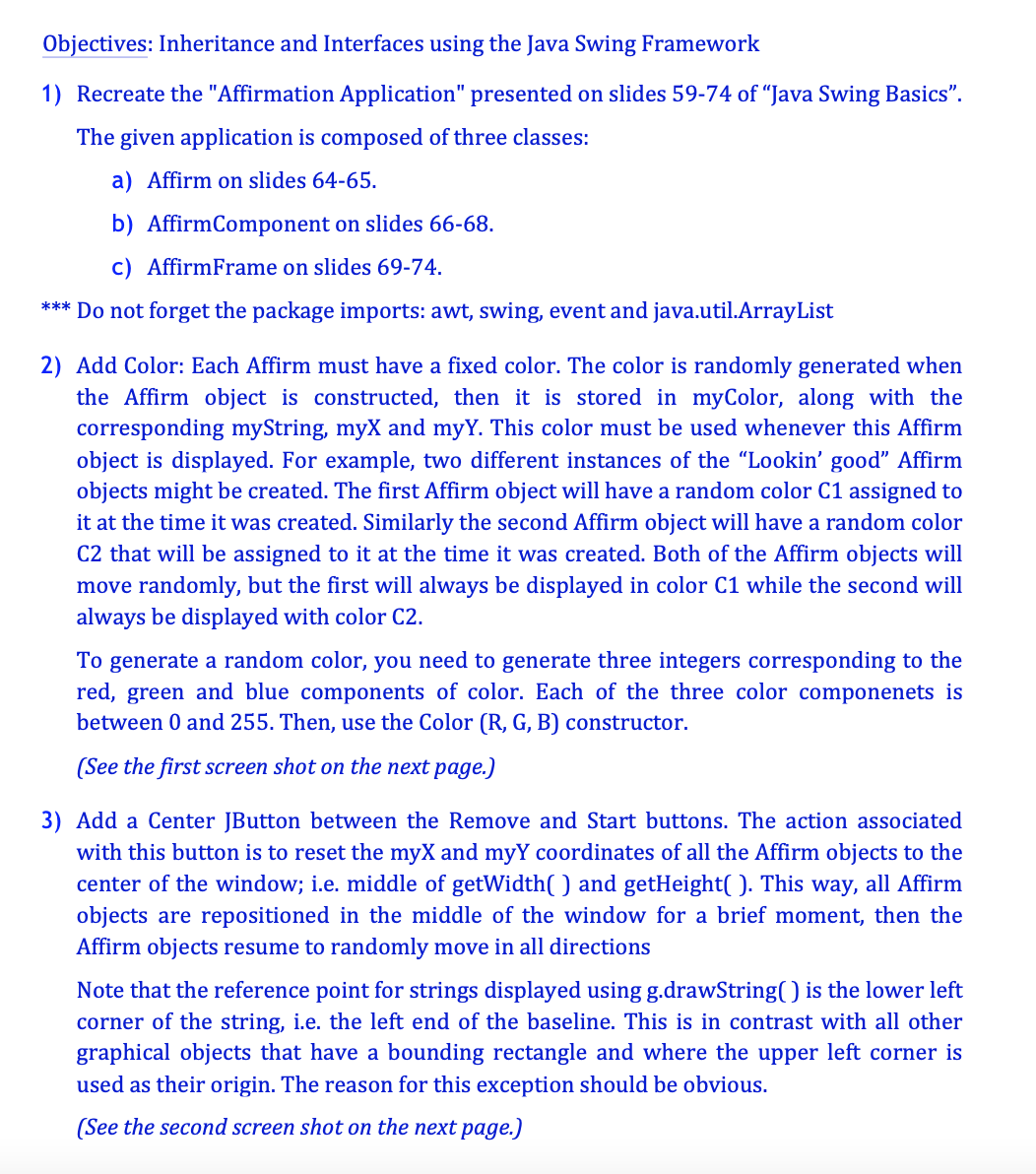 Objectives Inheritance and Interfaces using the Java Swing Framewor...