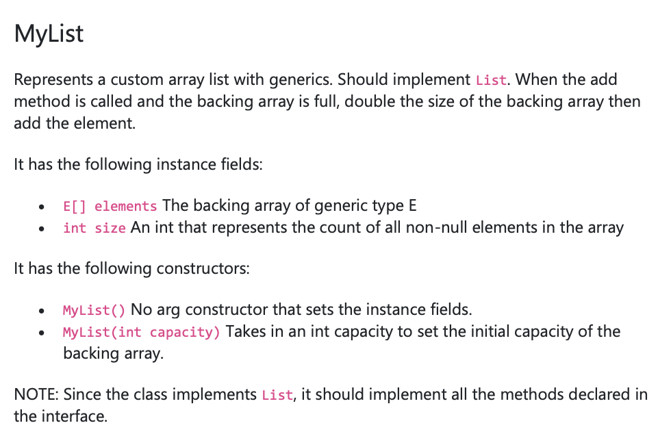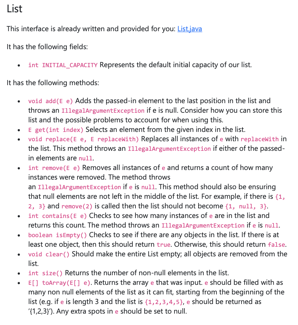 List This interface is already written and provided for you: List....