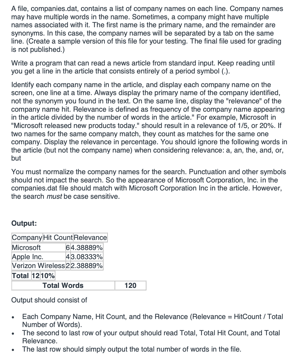 A file, companies.dat contains a list of company names on each line...