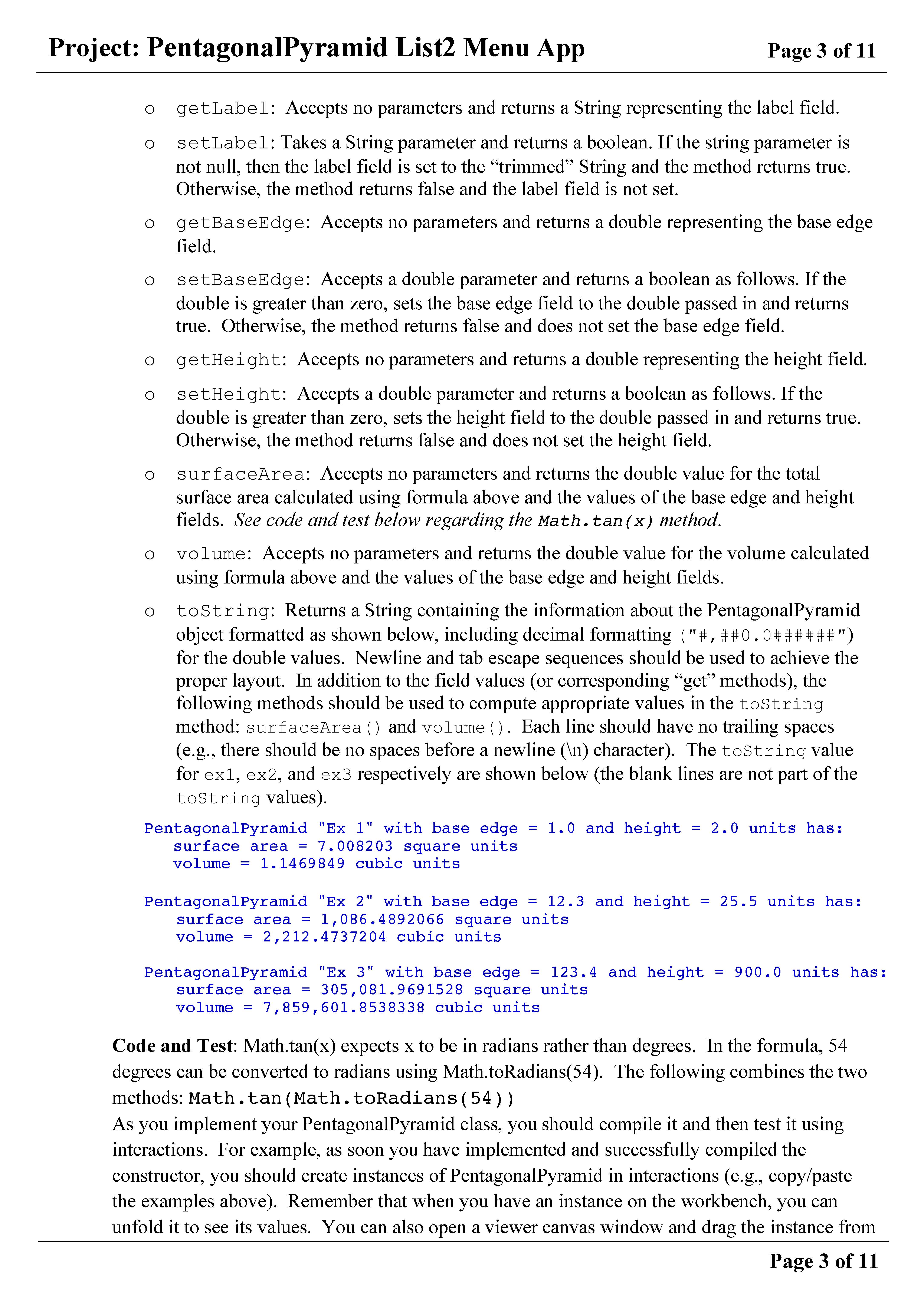 Project: PentagonalPyramid List2 Menu App Page 1 of 11 Page 1 of 1...