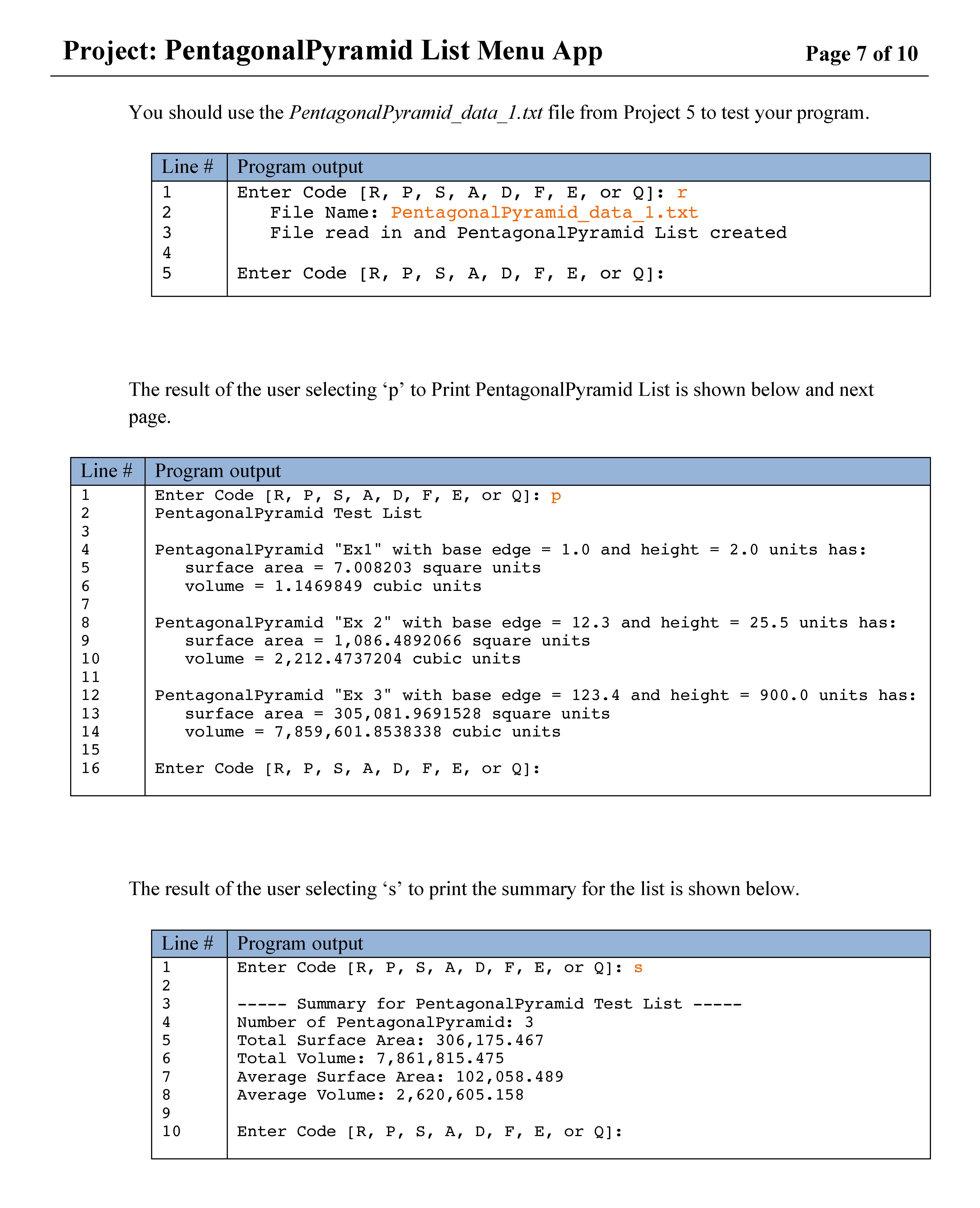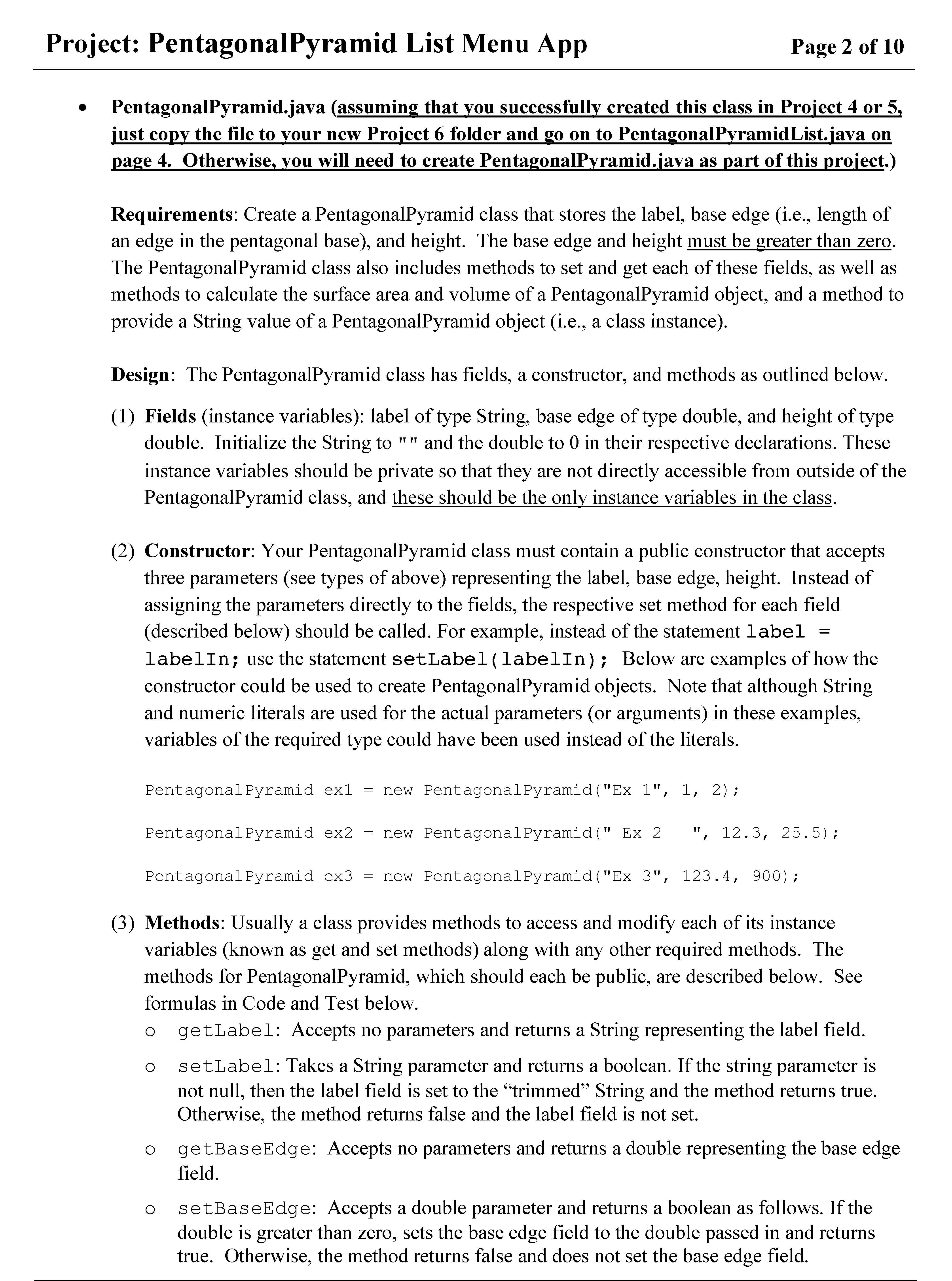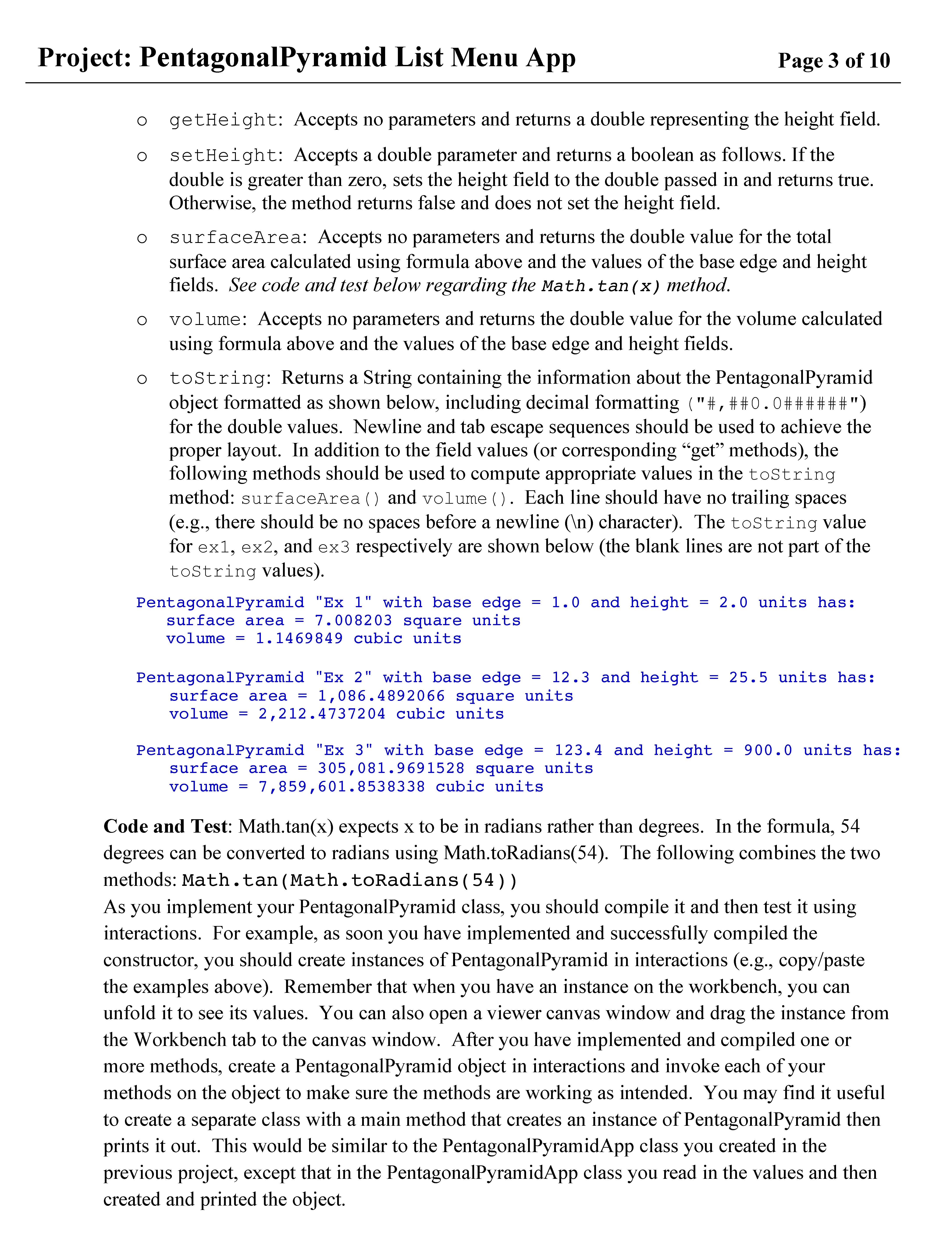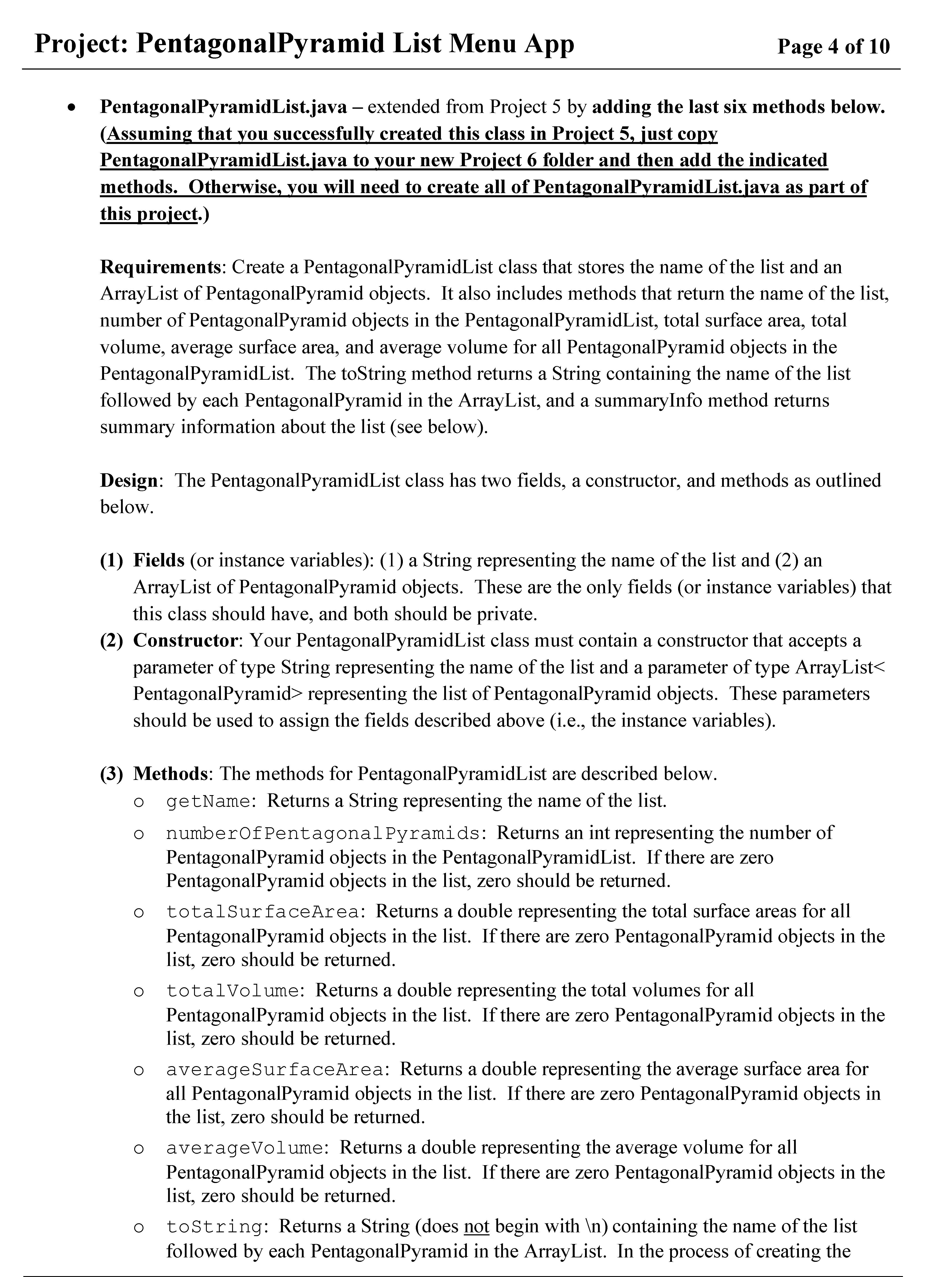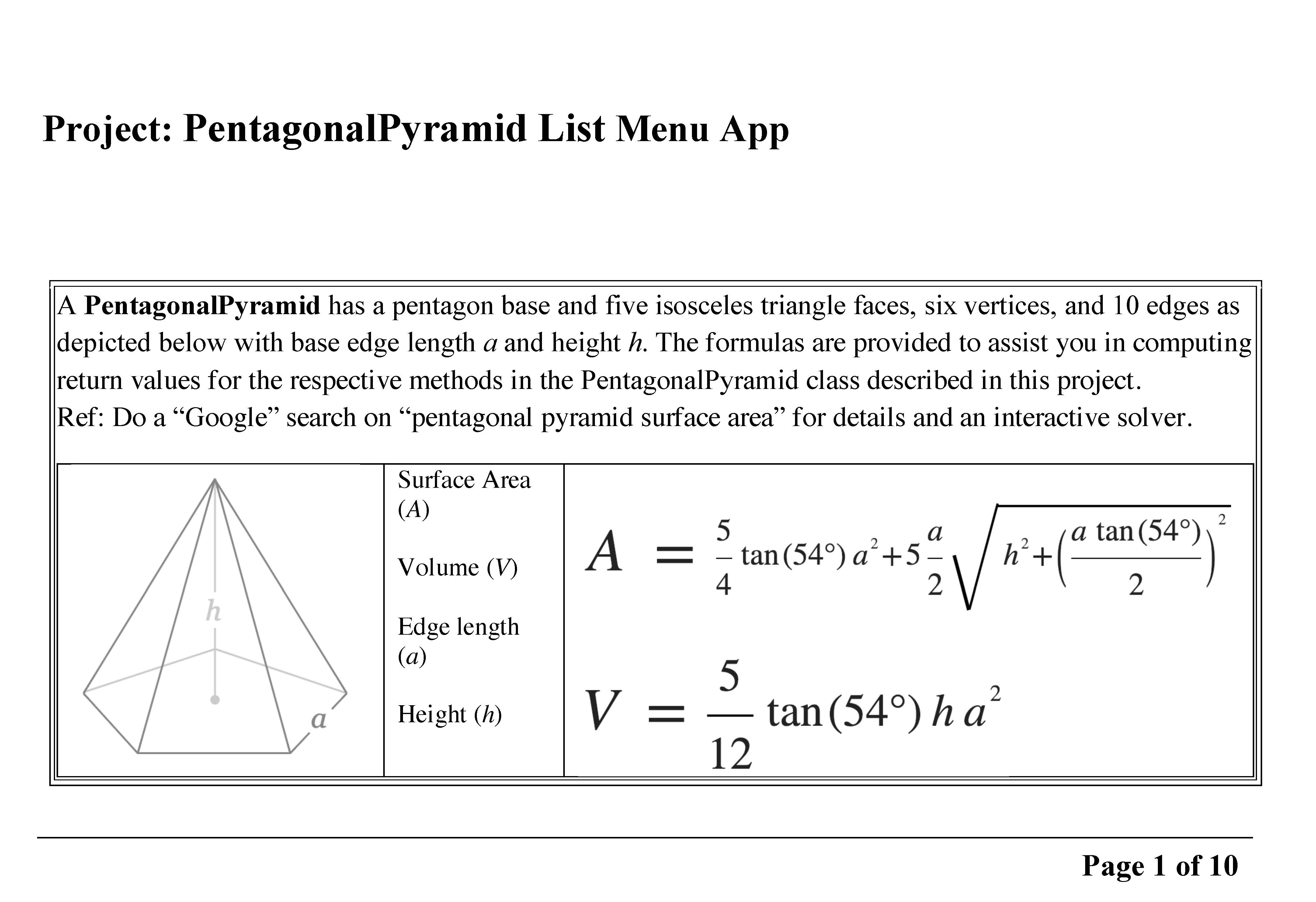 Project: PentagonalPyramid List Menu App Page 1 of 10 Page 1 of 10...