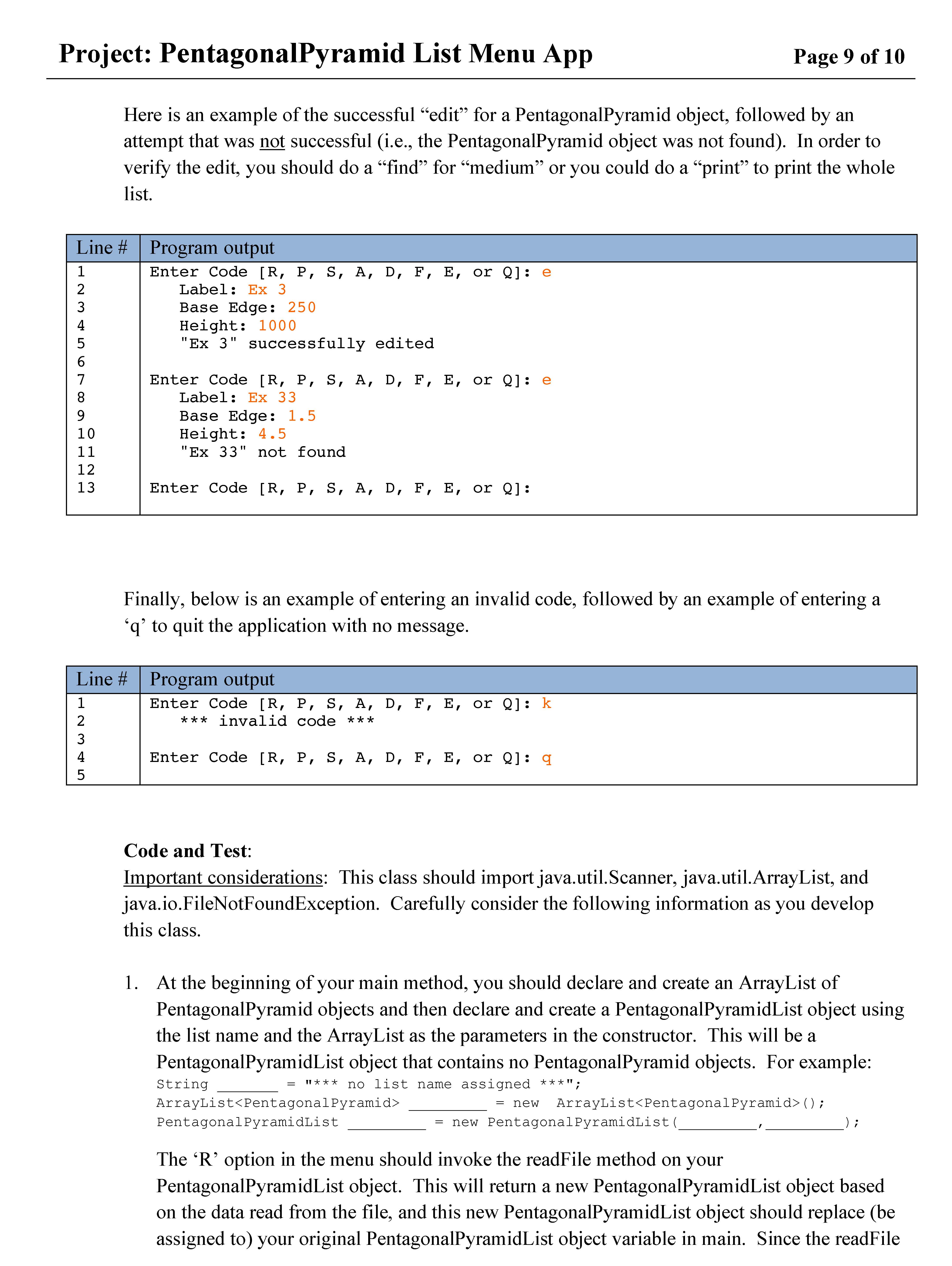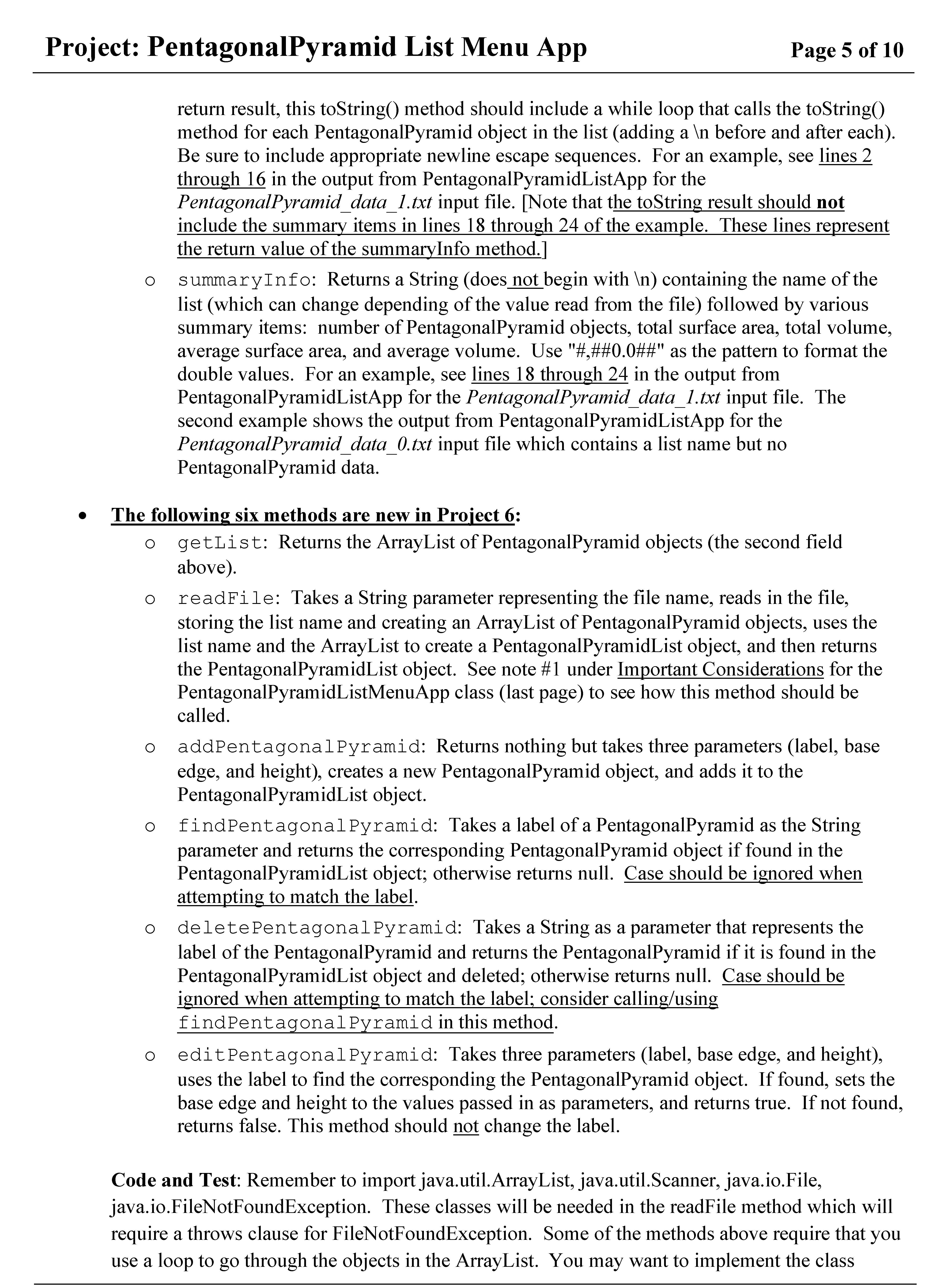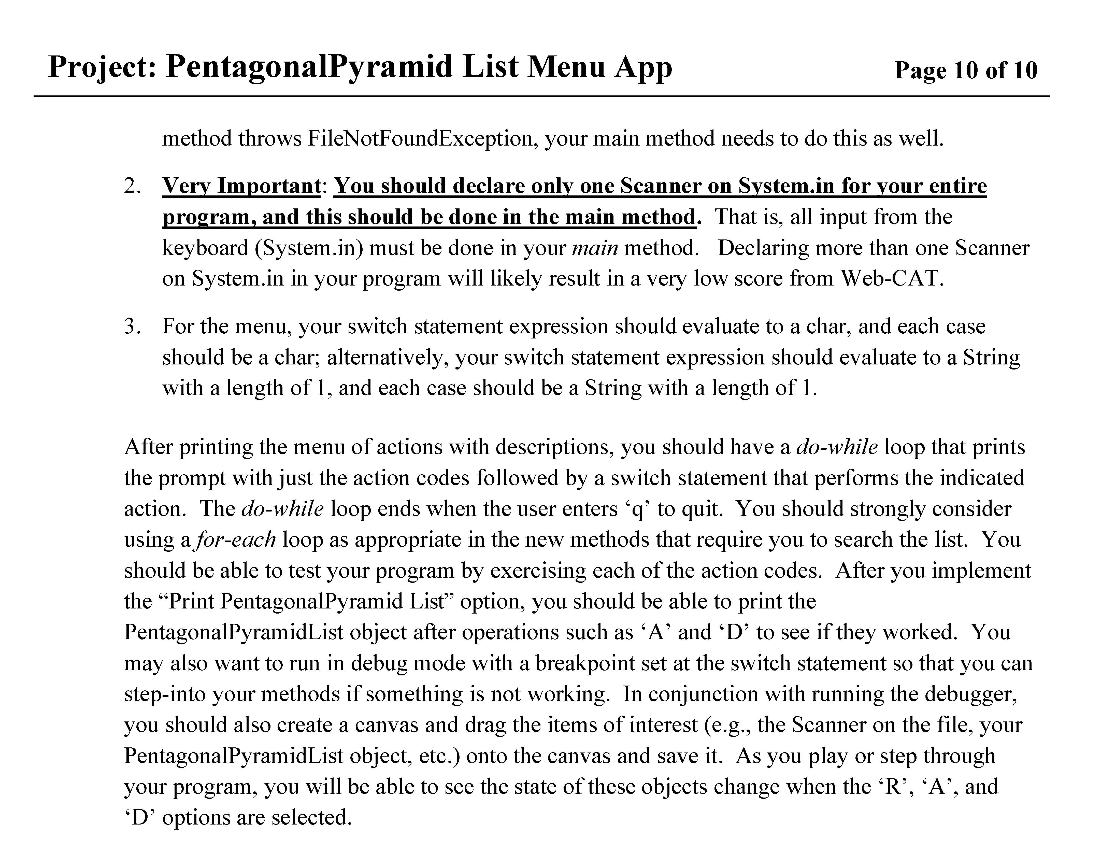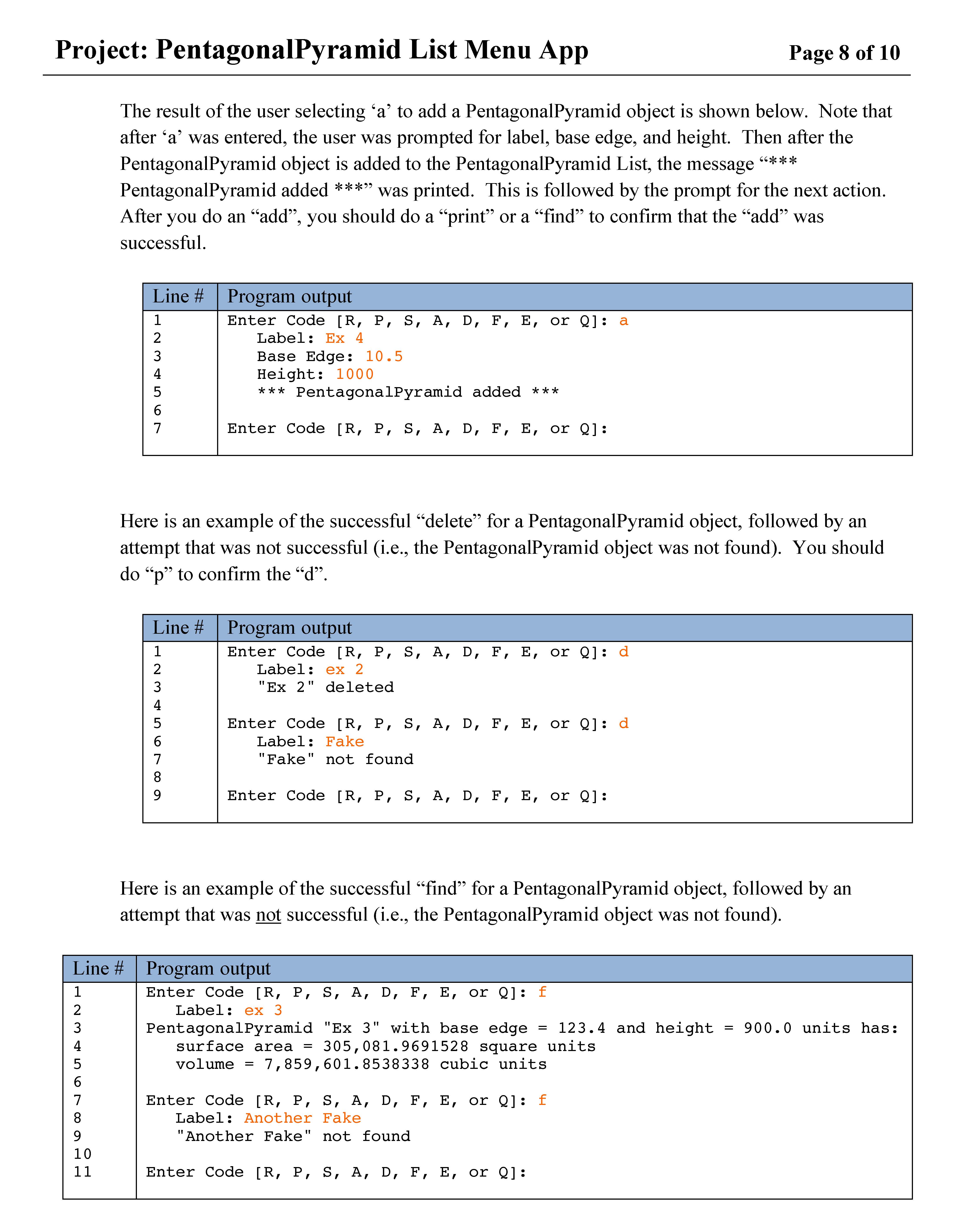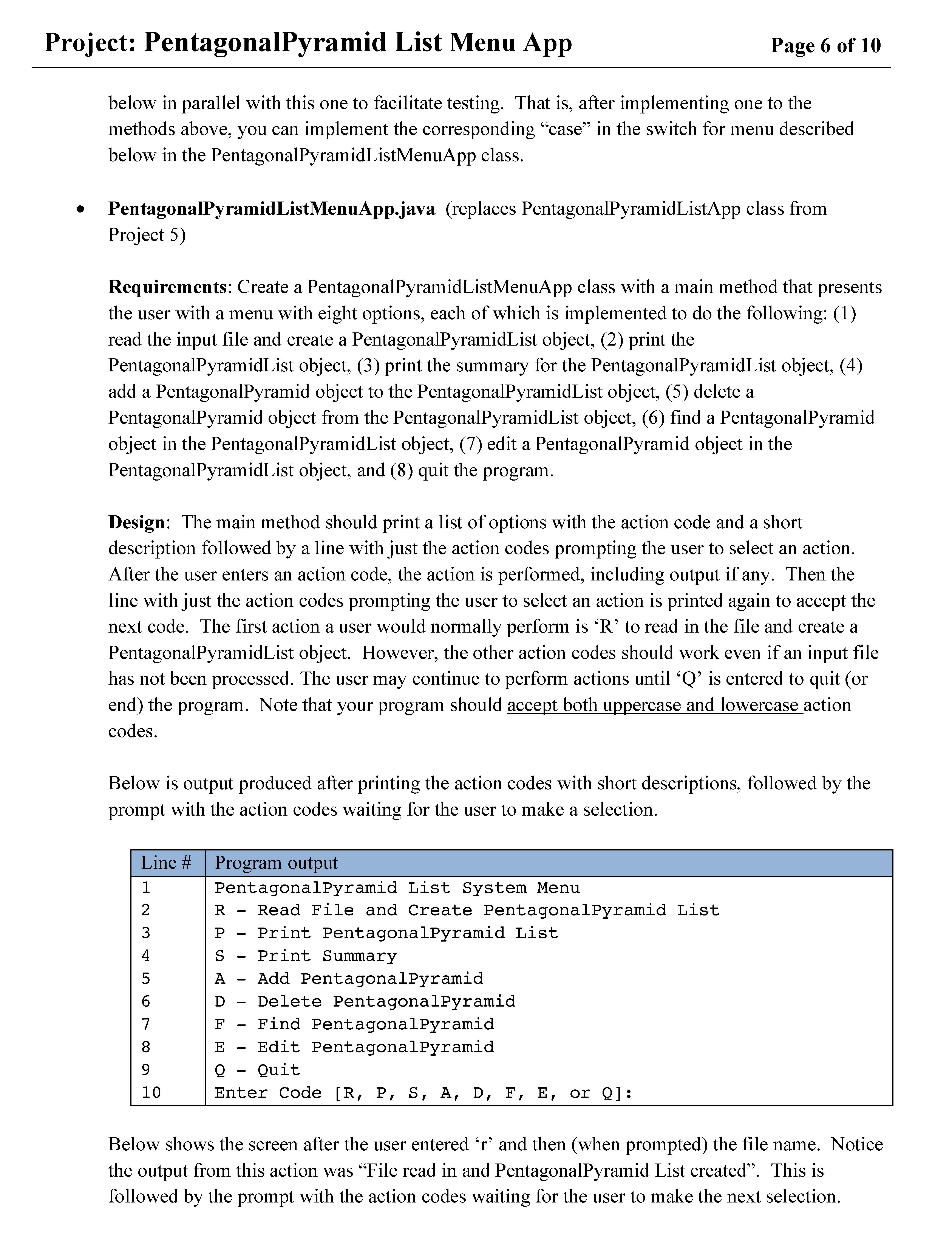 Project: PentagonalPyramid List Menu App Page 1 of 10 Page 1 of 10...