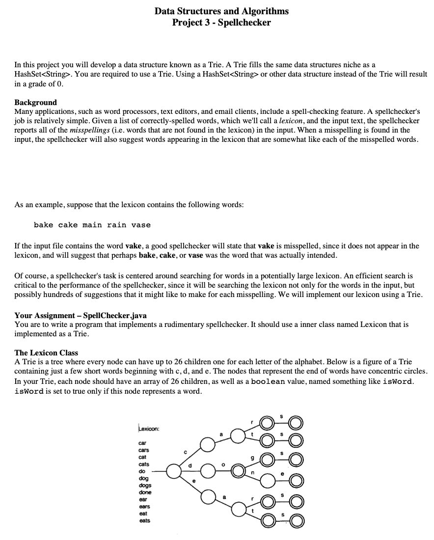 Data Structures and Algorithms Project 3 - Spellchecker In this p...