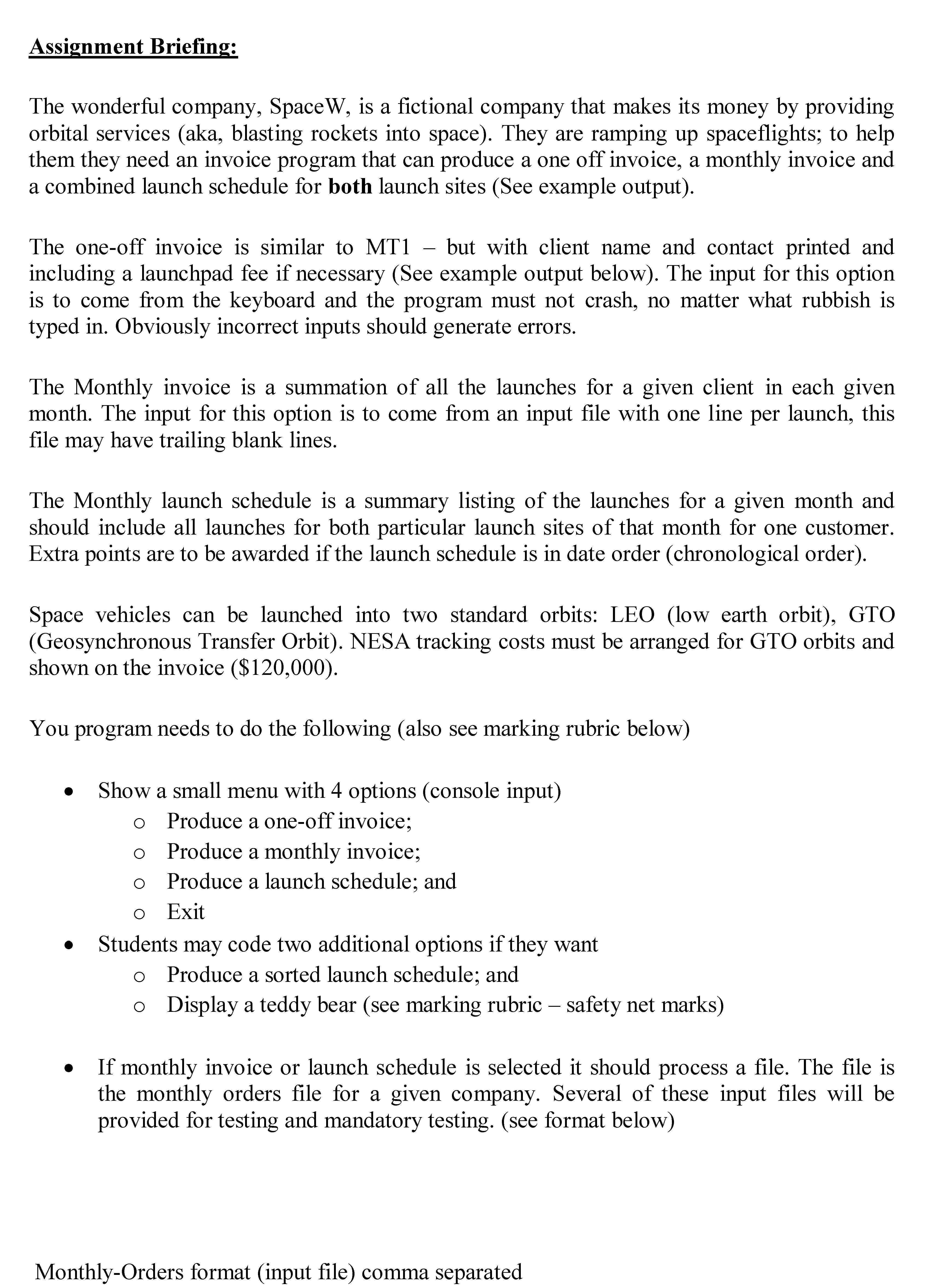 Assignment Briefing: The wonderful company, SpaceW, is a fictional...