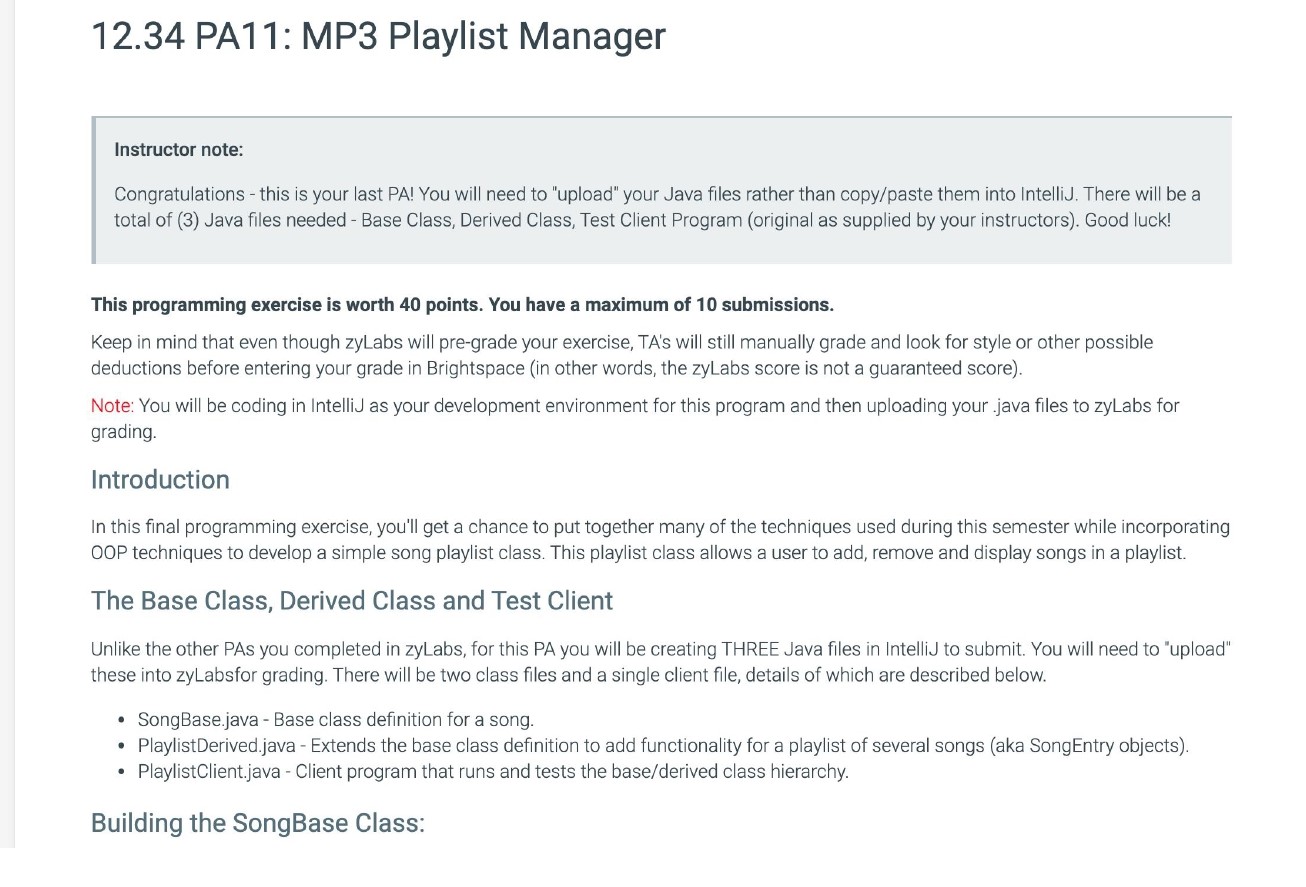 12.34 PA11: MP3 Playlist Manager Instructor note: Congratulations...