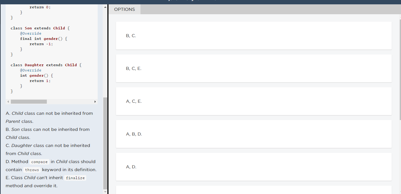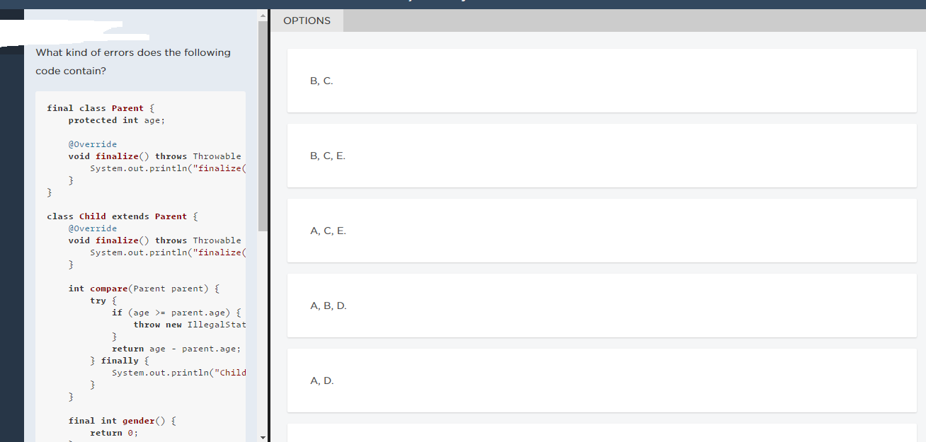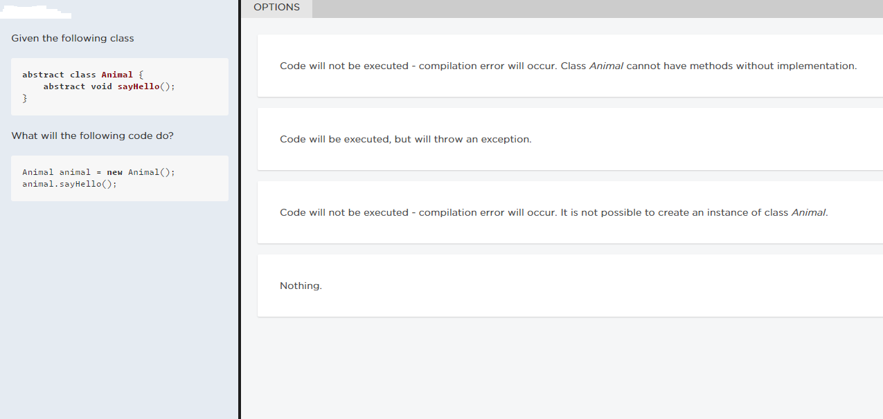OPTIONS 4 Given the following class Code will not be executed - ...