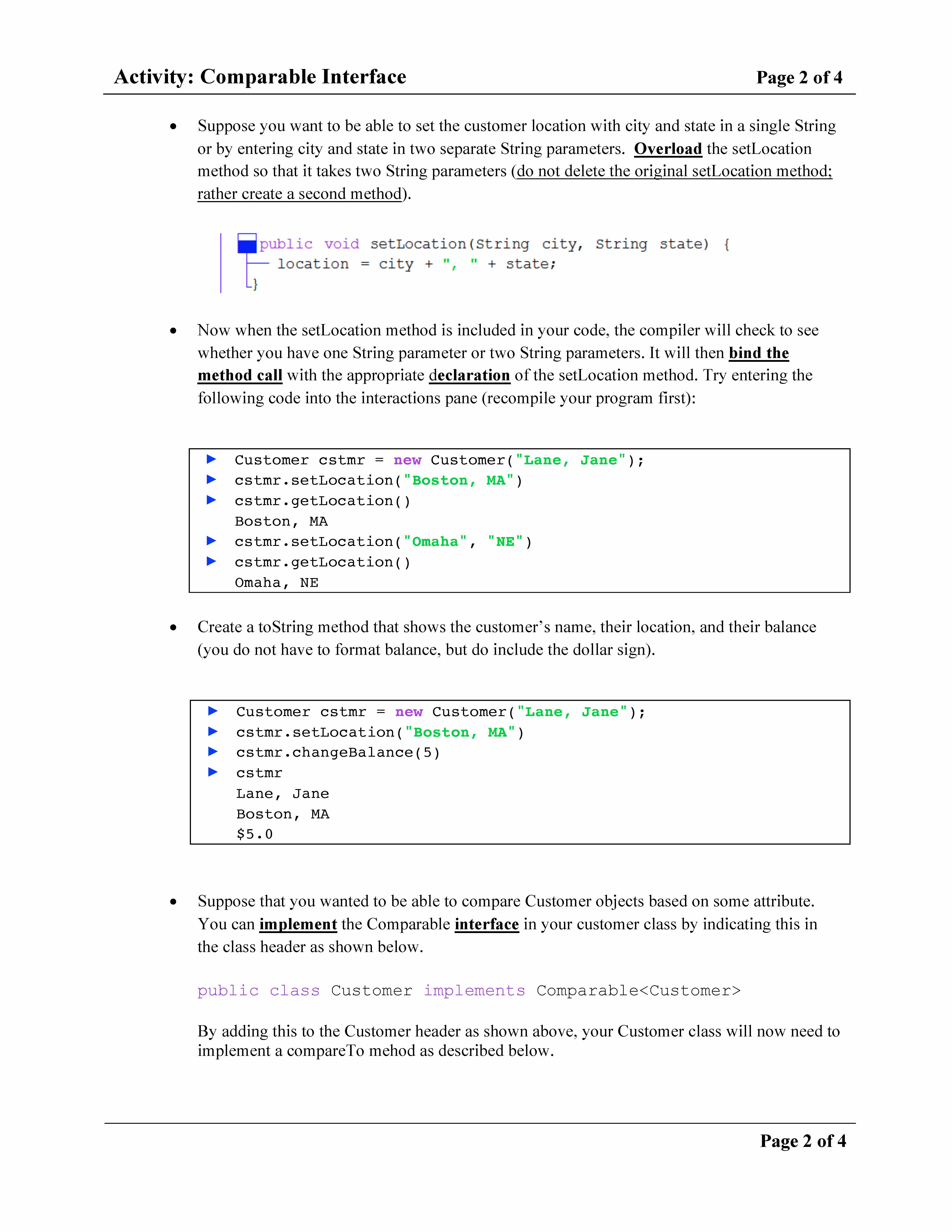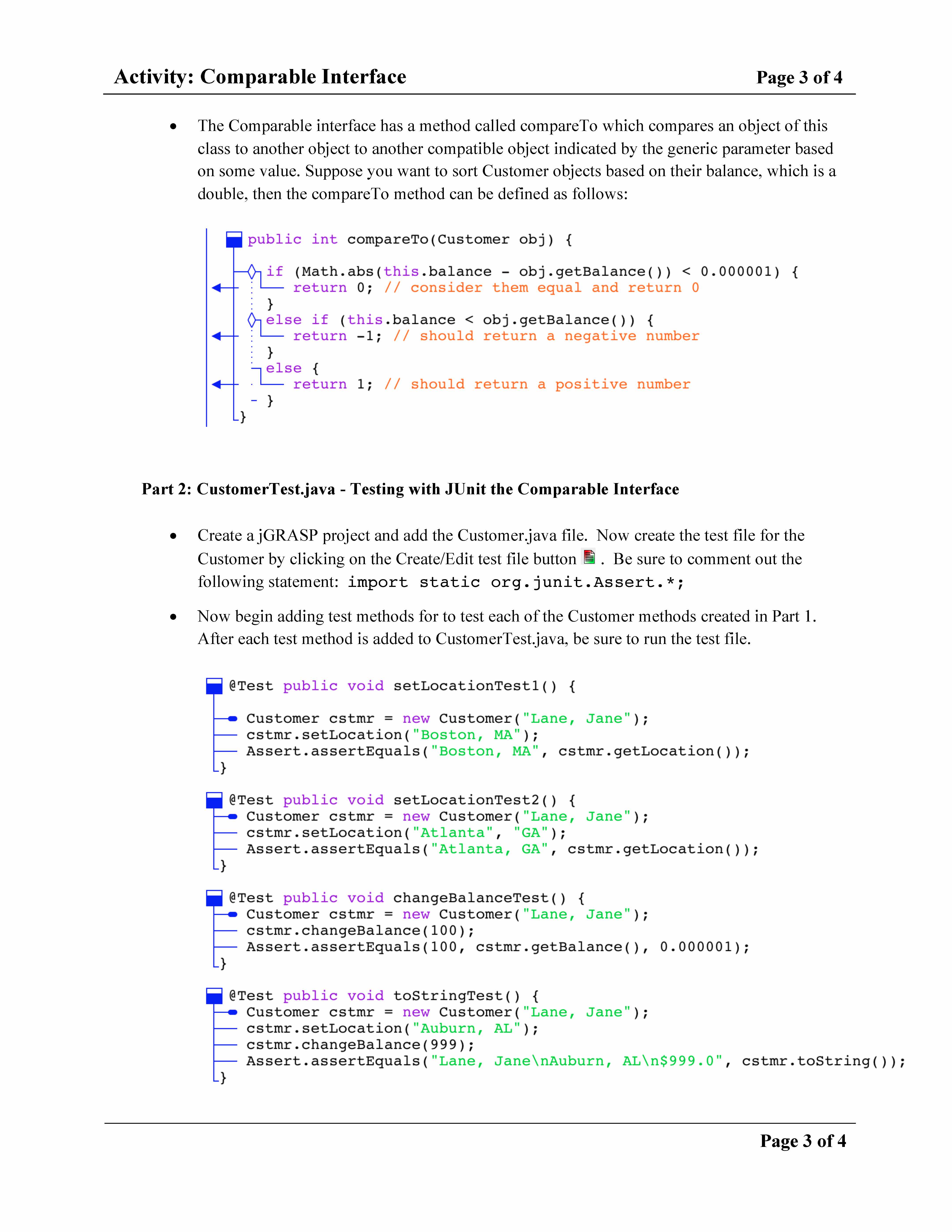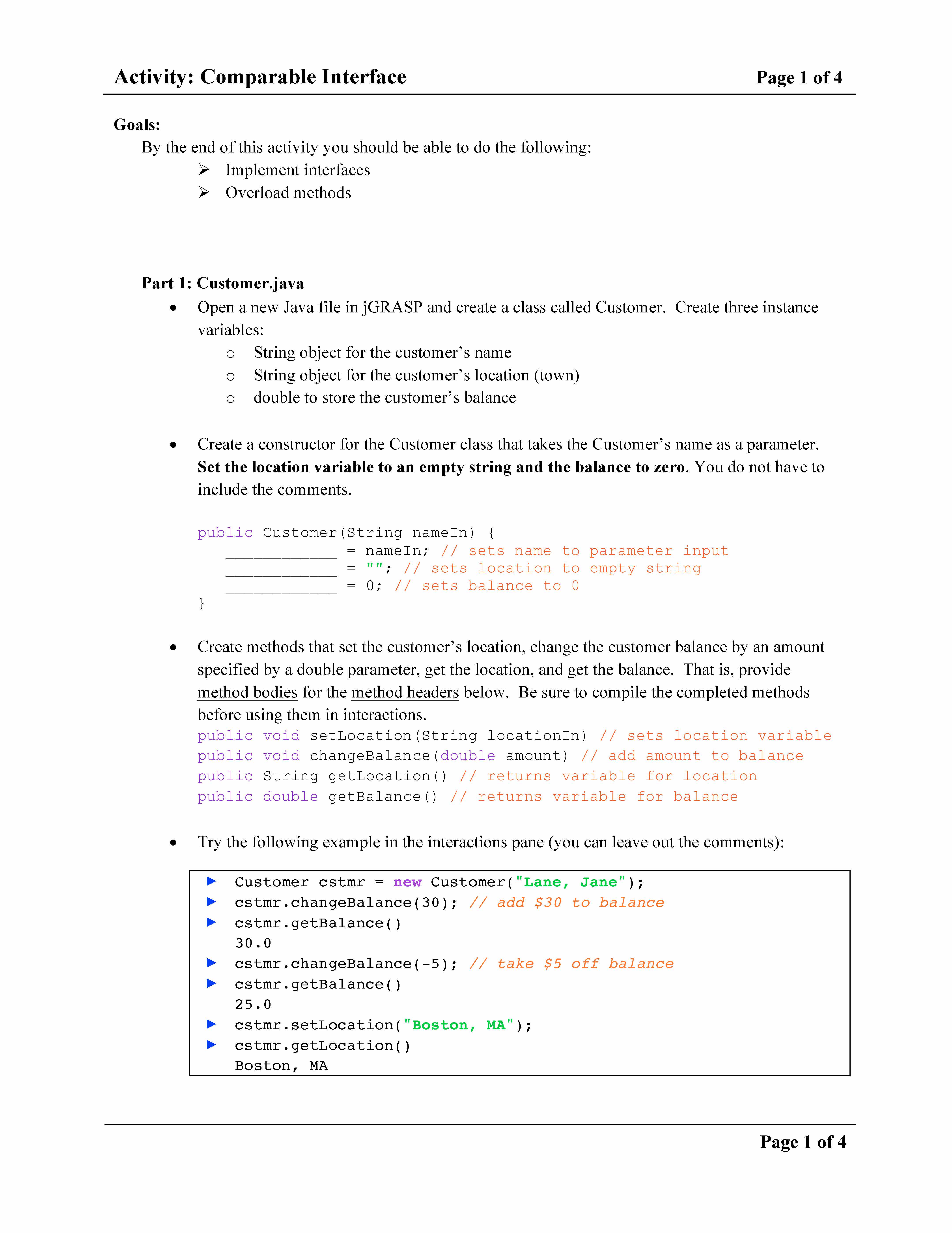 Activity: Comparable Interface Page 1 of 4 Page 1 of 4 Goals: By...