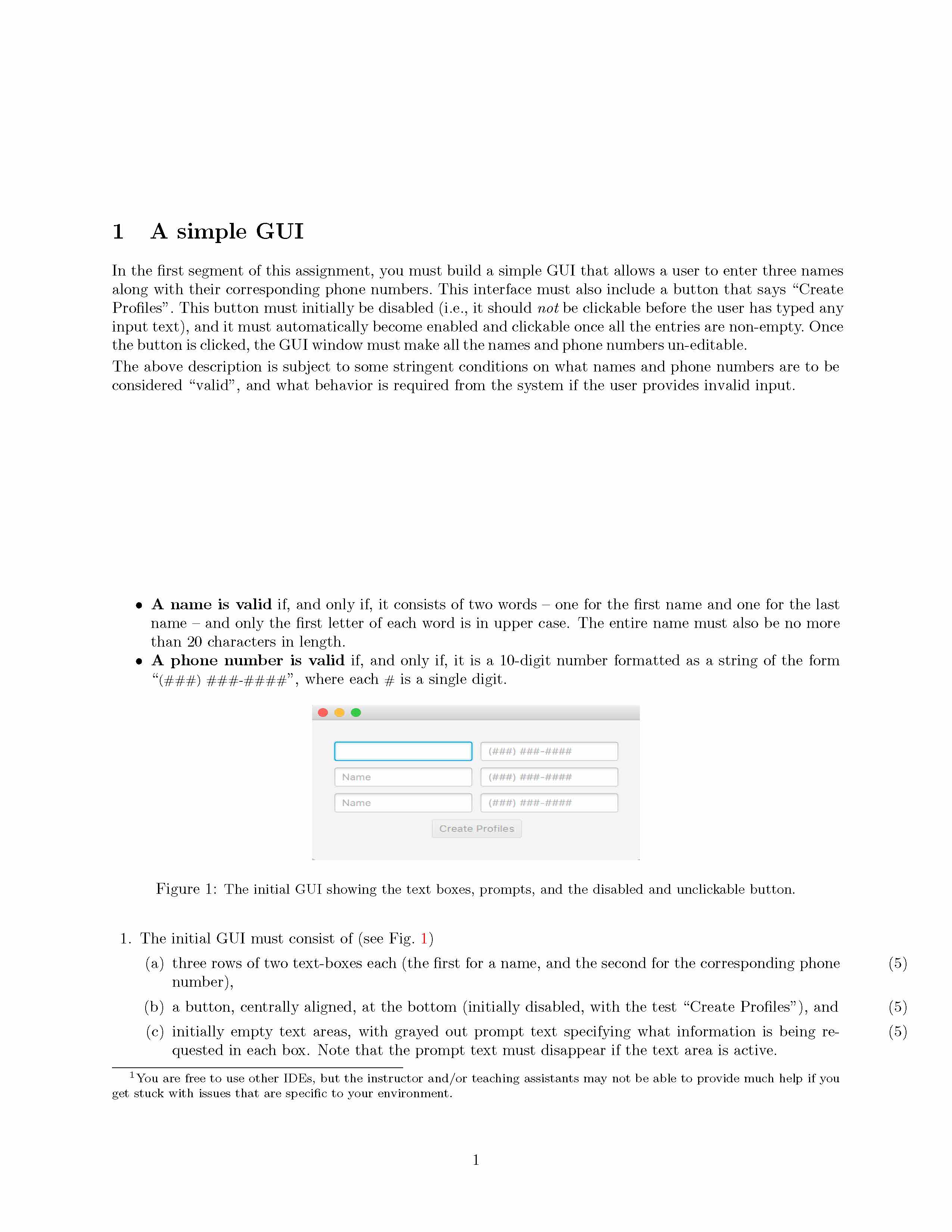 1 A simple GUI In the first segment of this assignment, you must b...