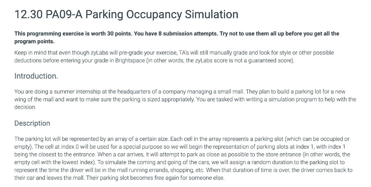 12.30 PA09-A Parking Occupancy Simulation This programming exercis...