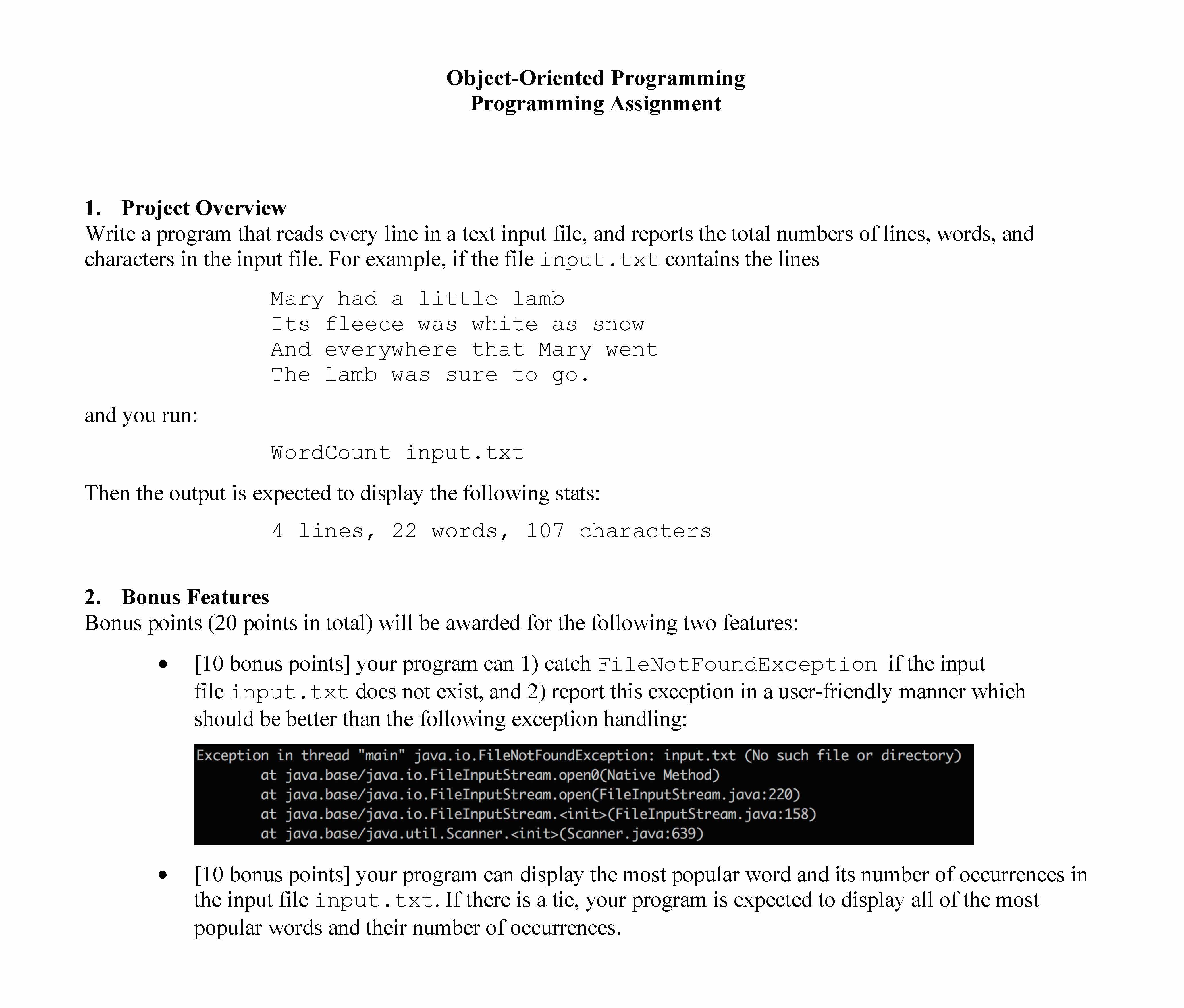Object-Oriented Programming Programming Assignment 1. Project Ove...