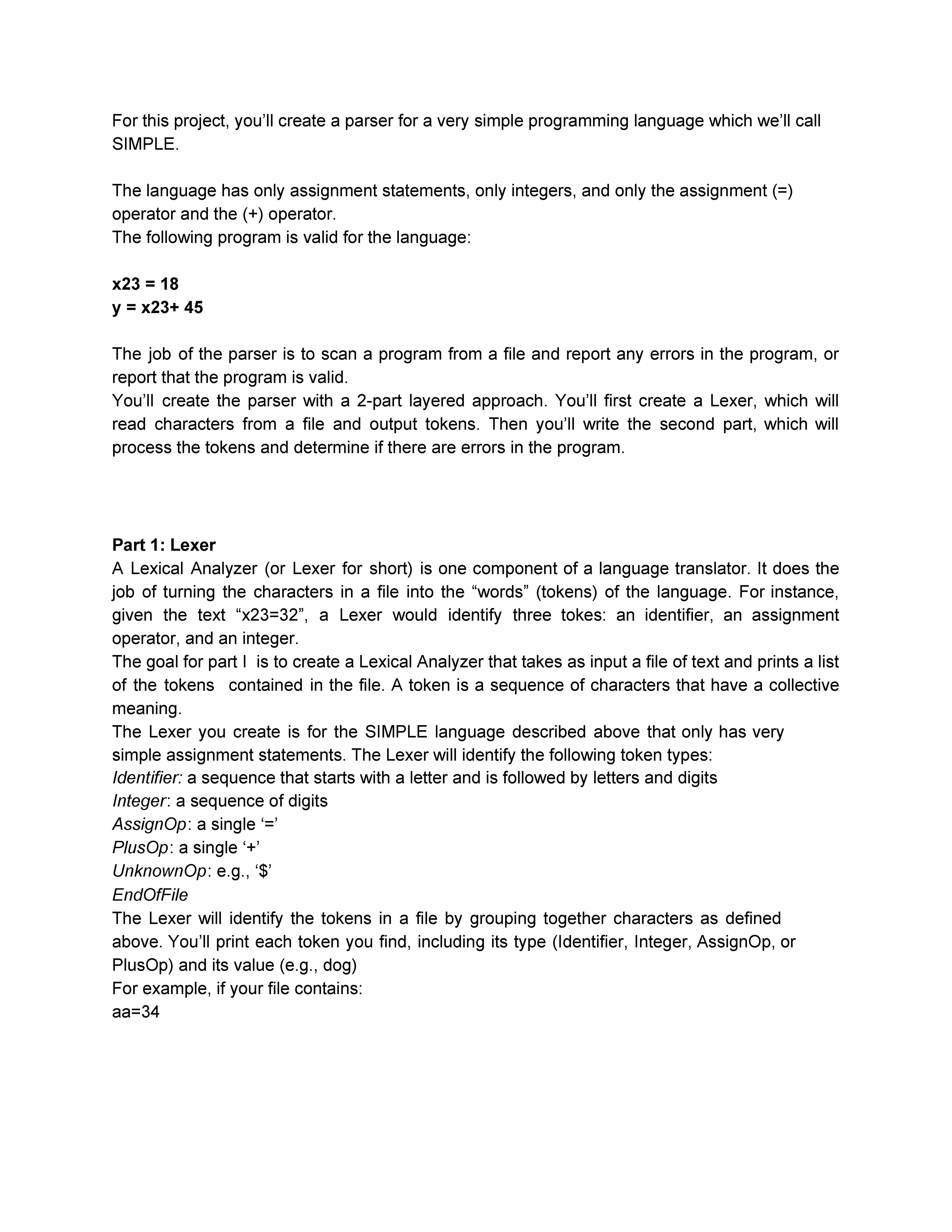 For this project, you’ll create a parser for a very simple progra...