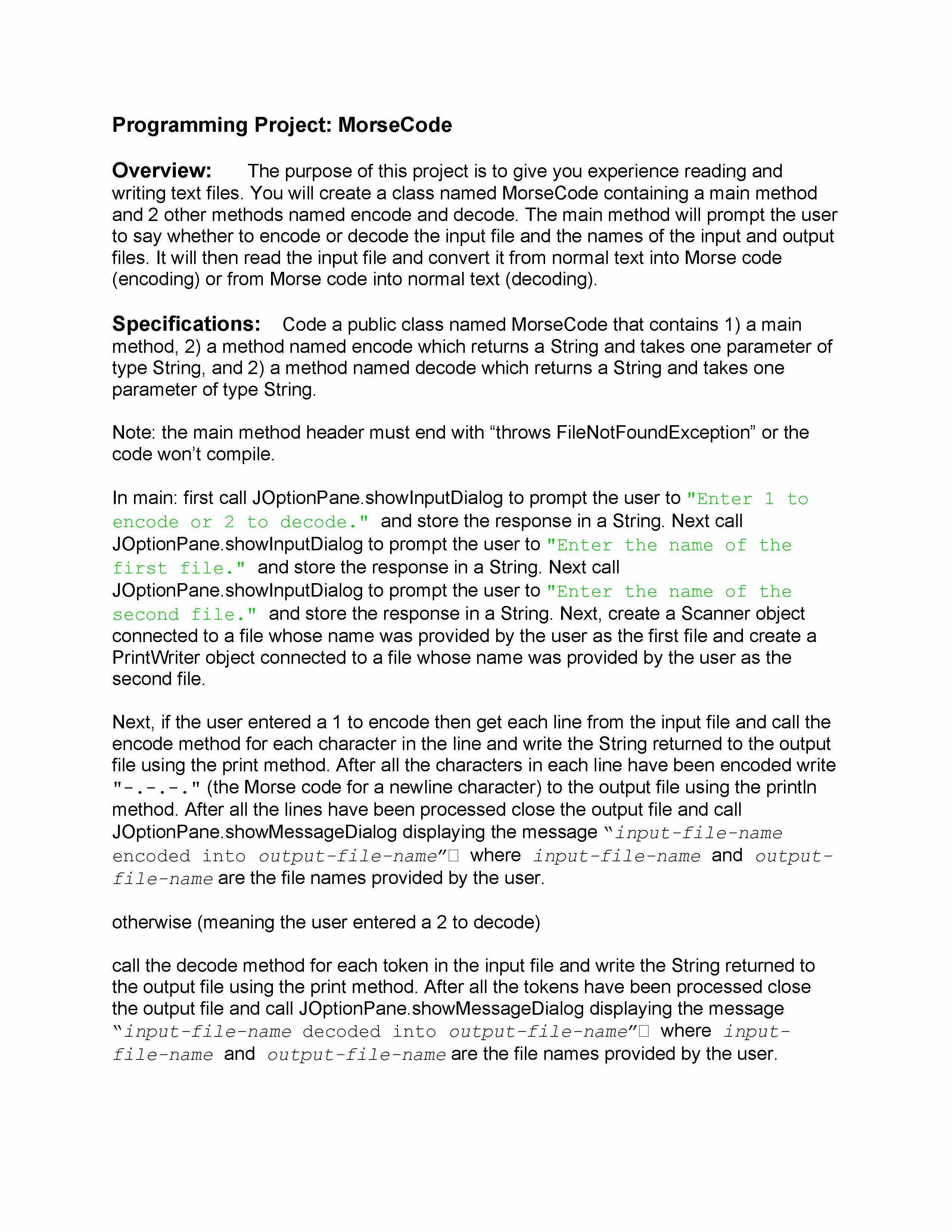 Programming Project: MorseCode Overview: The purpose of this ...