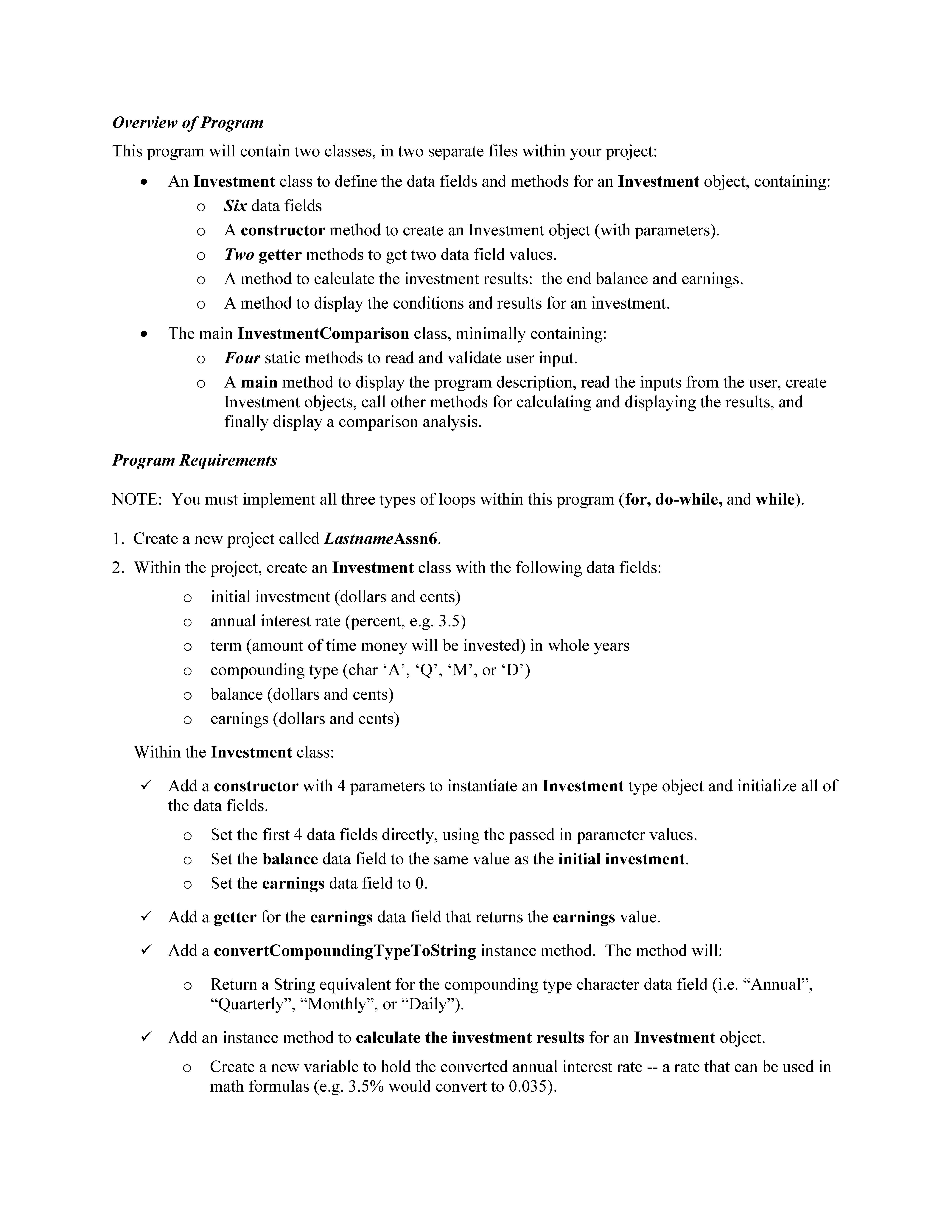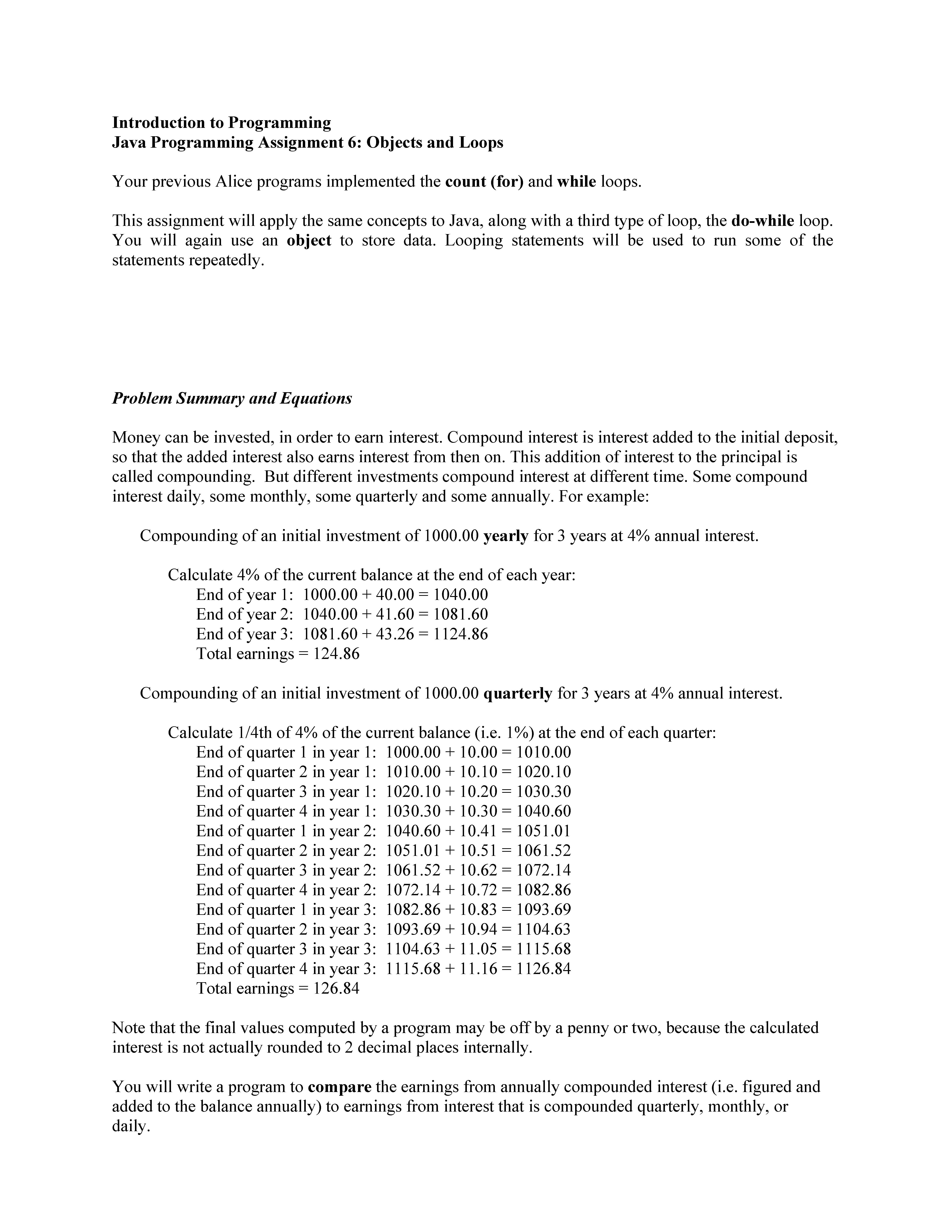 Introduction to Programming Java Programming Assignment 6: Objects...
