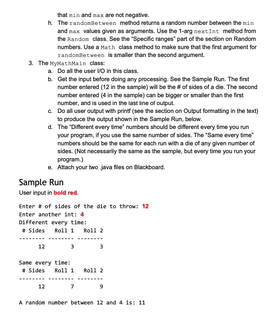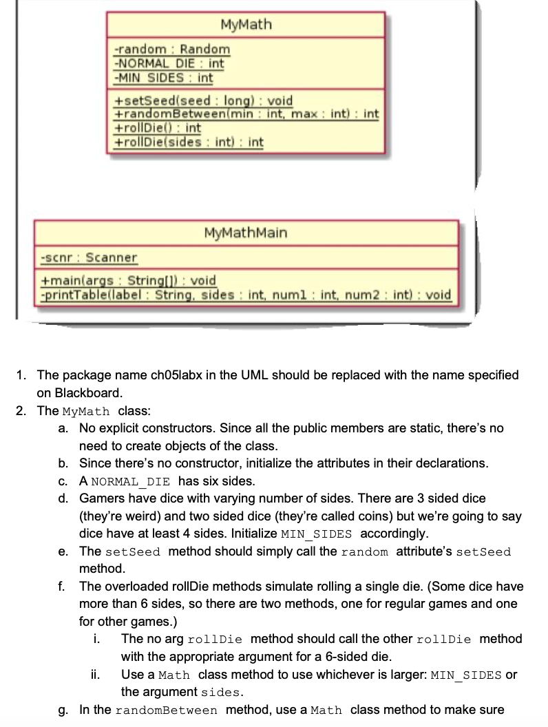 MyMath -random : Random -NORMAL DIE : int -MIN SIDES : int +set...