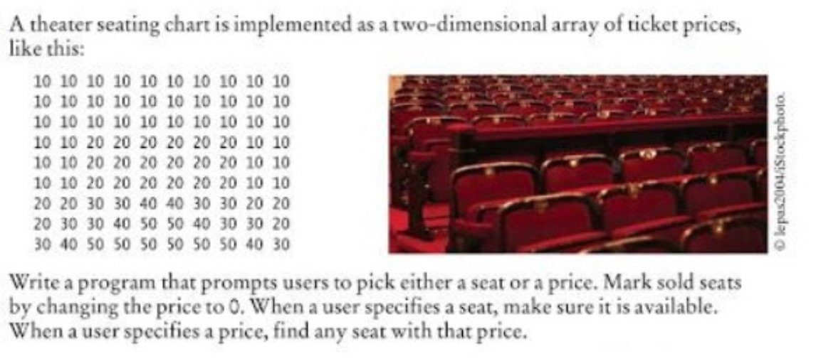 A theater seating chart is implemented as a two-dimensional array o...