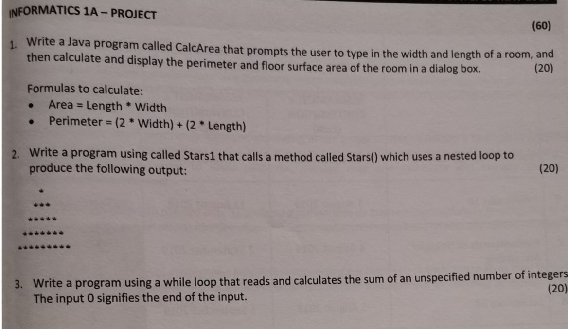 INFORMATICS 1A - PROJECT (60) 1. Write a Java program called Calc...