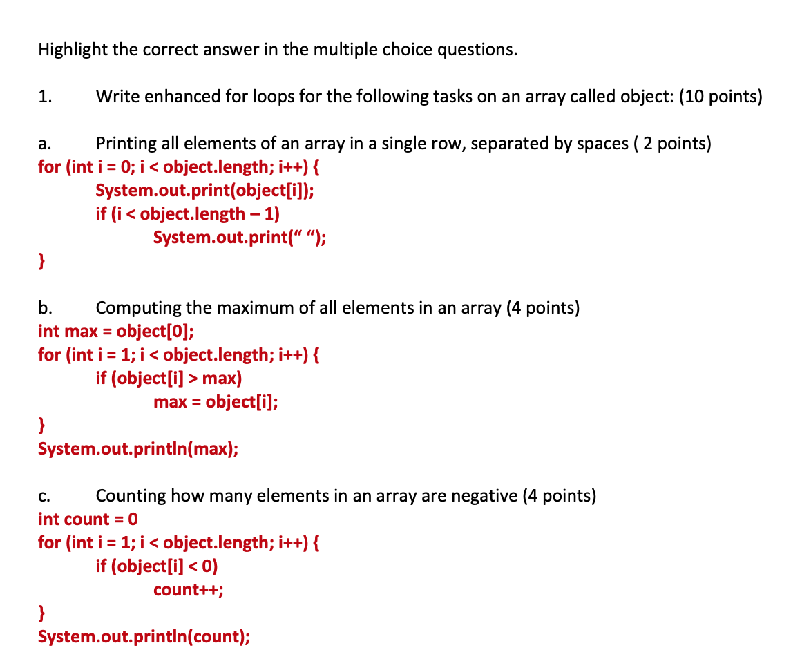 Highlight the correct answer in the multiple choice questions....