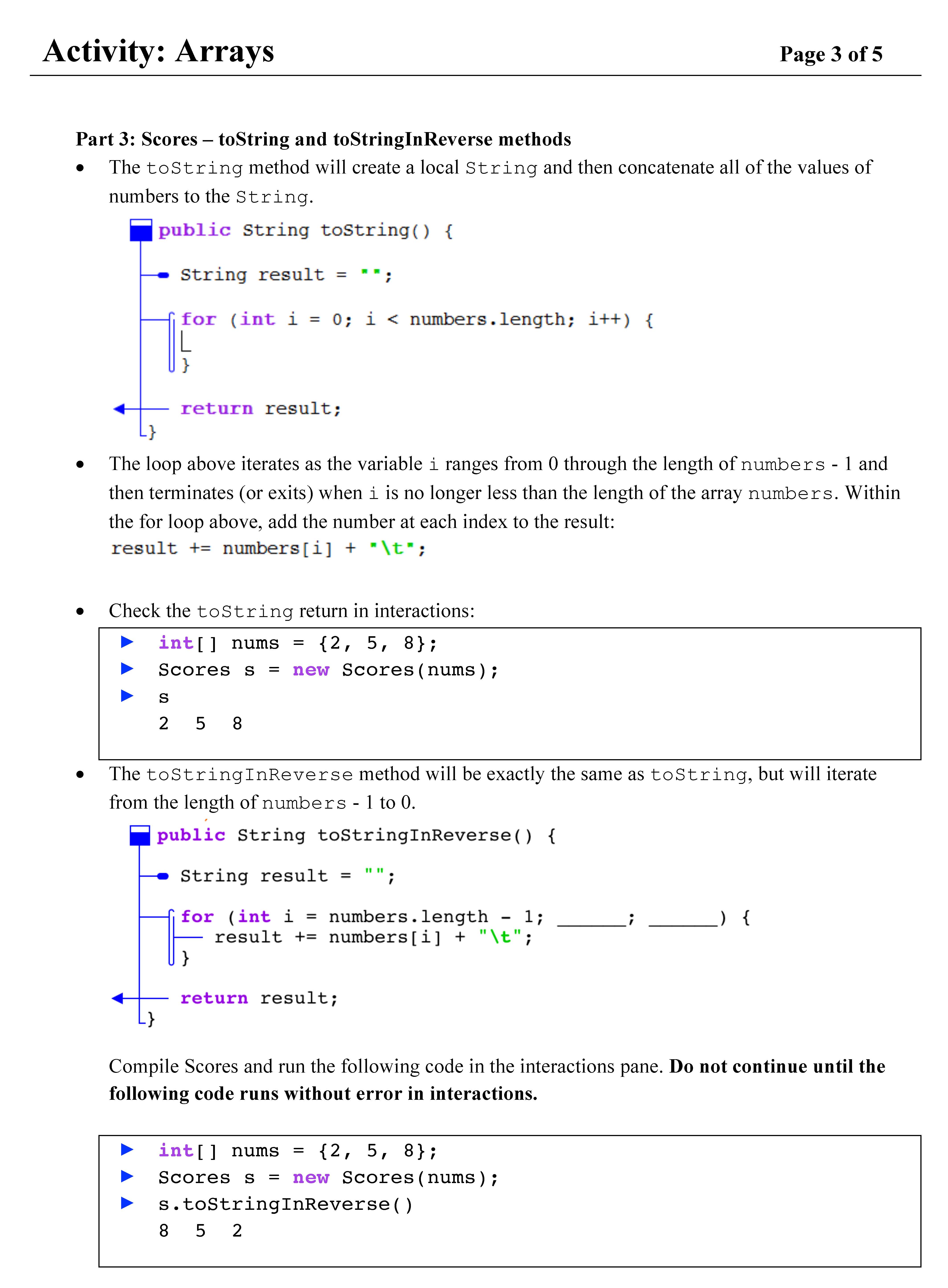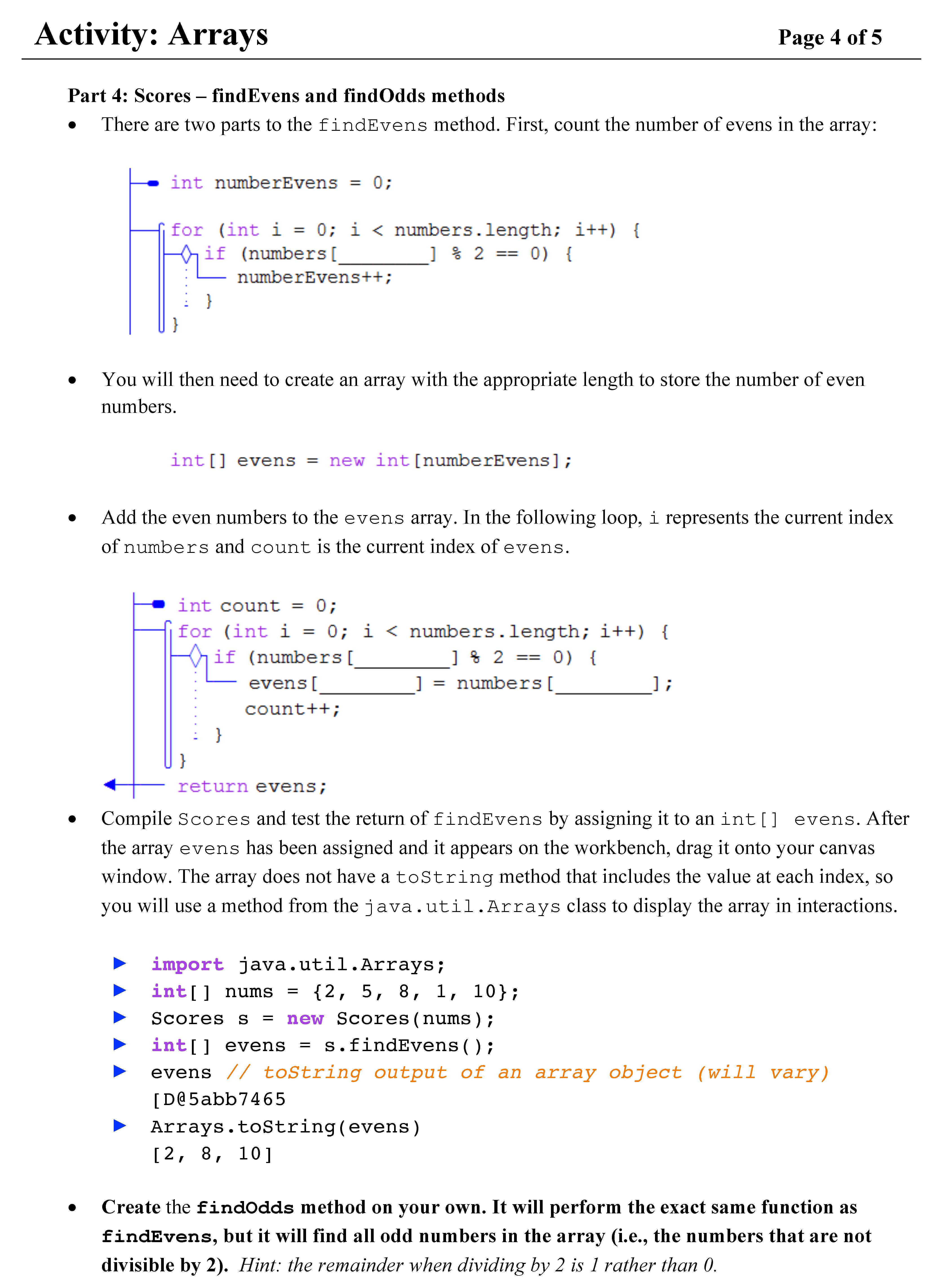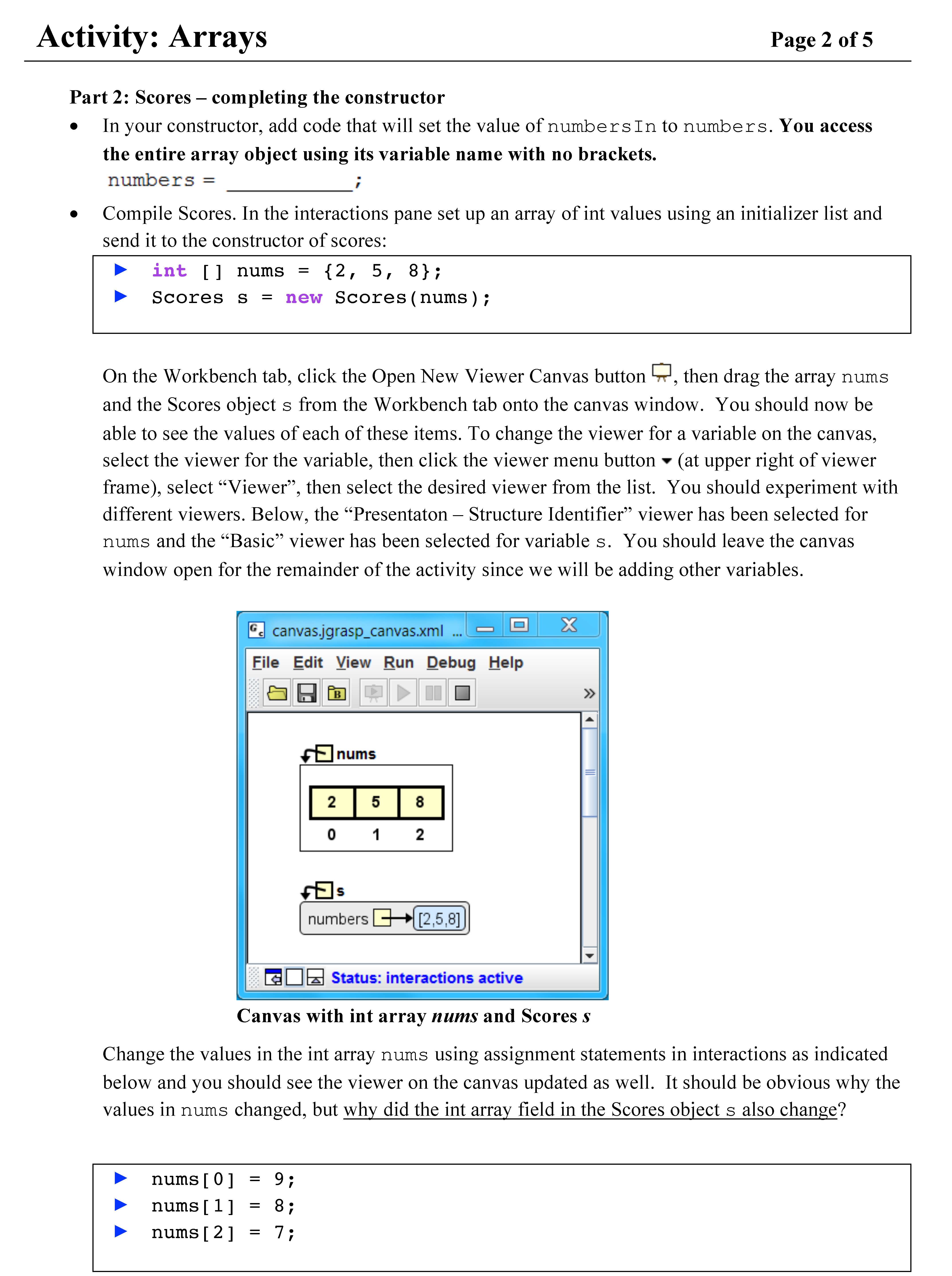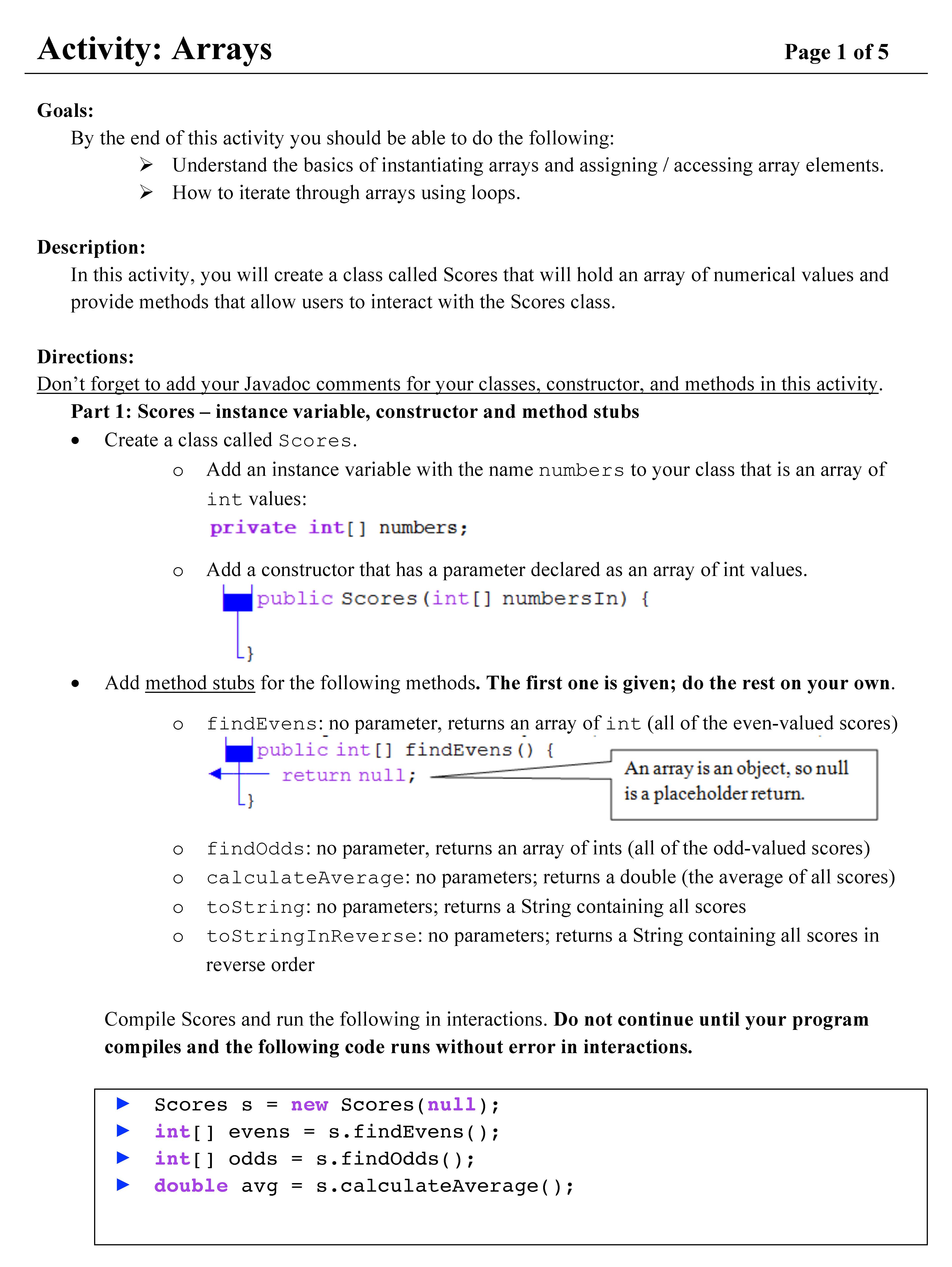 Activity: Arrays Page 1 of 5 Page 1 of 5 Goals: By the end of th...