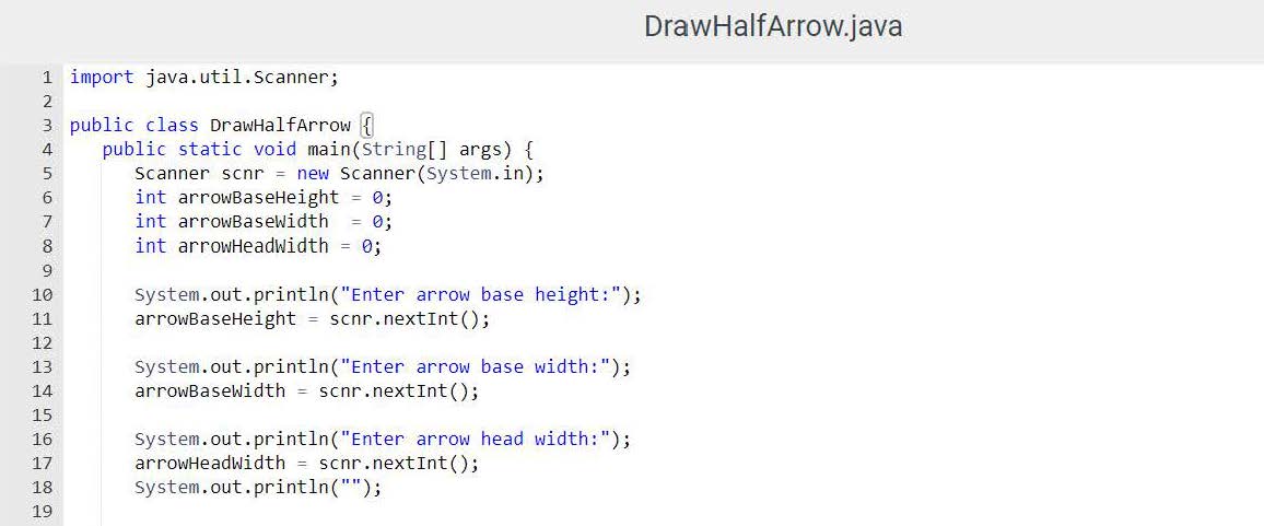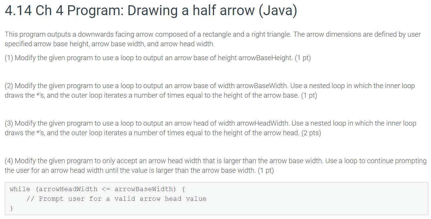 4.14 Ch 4 Program: Drawing a half arrow (Java) This program output...