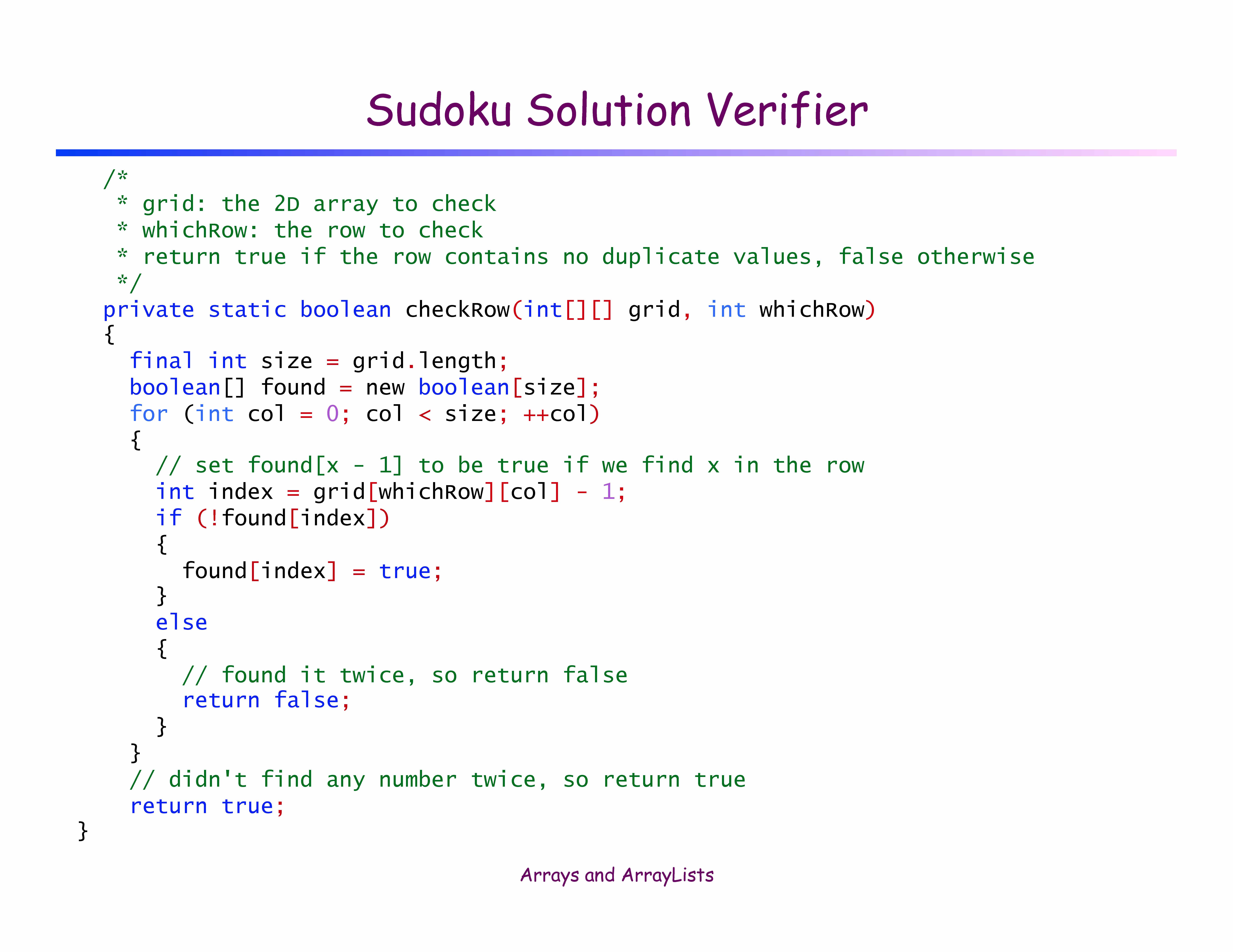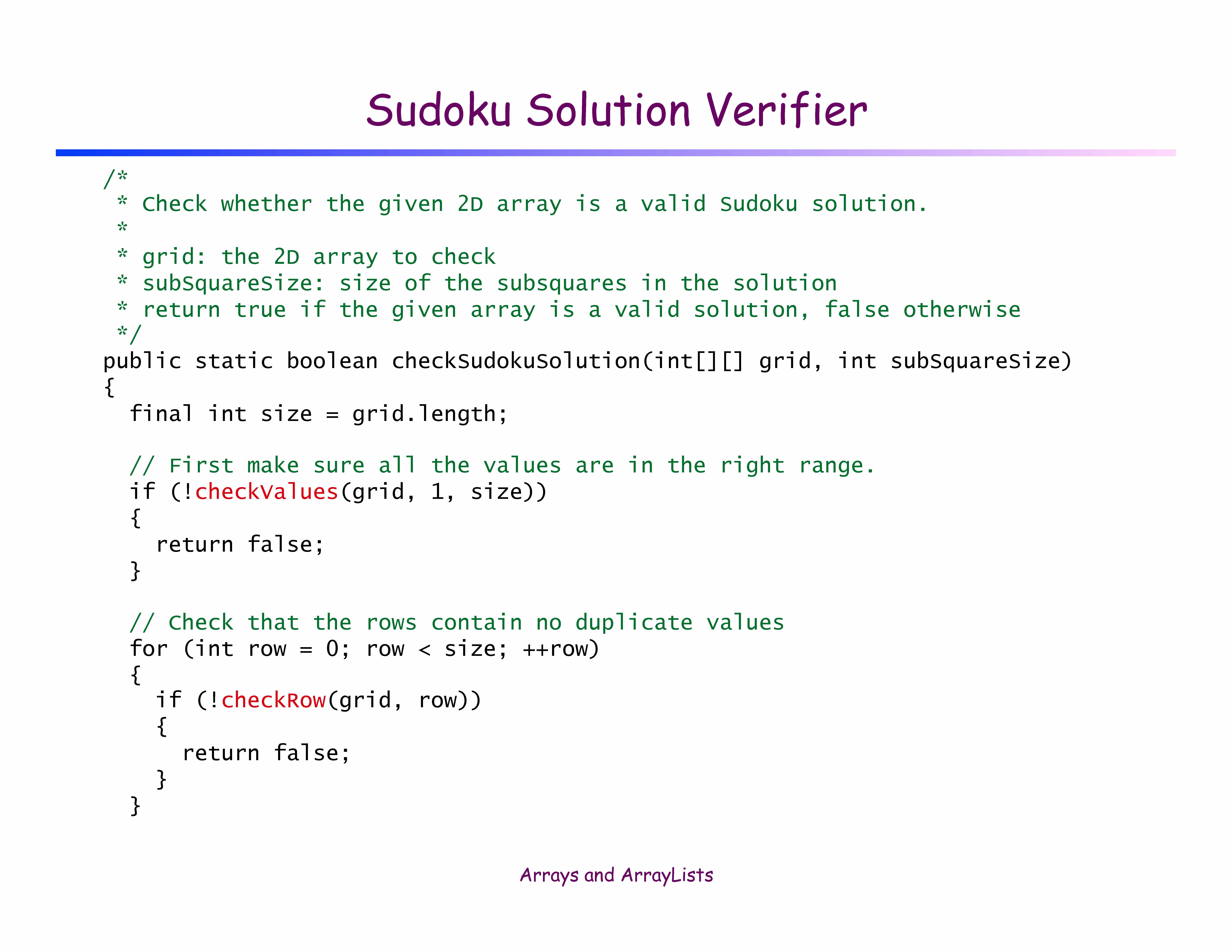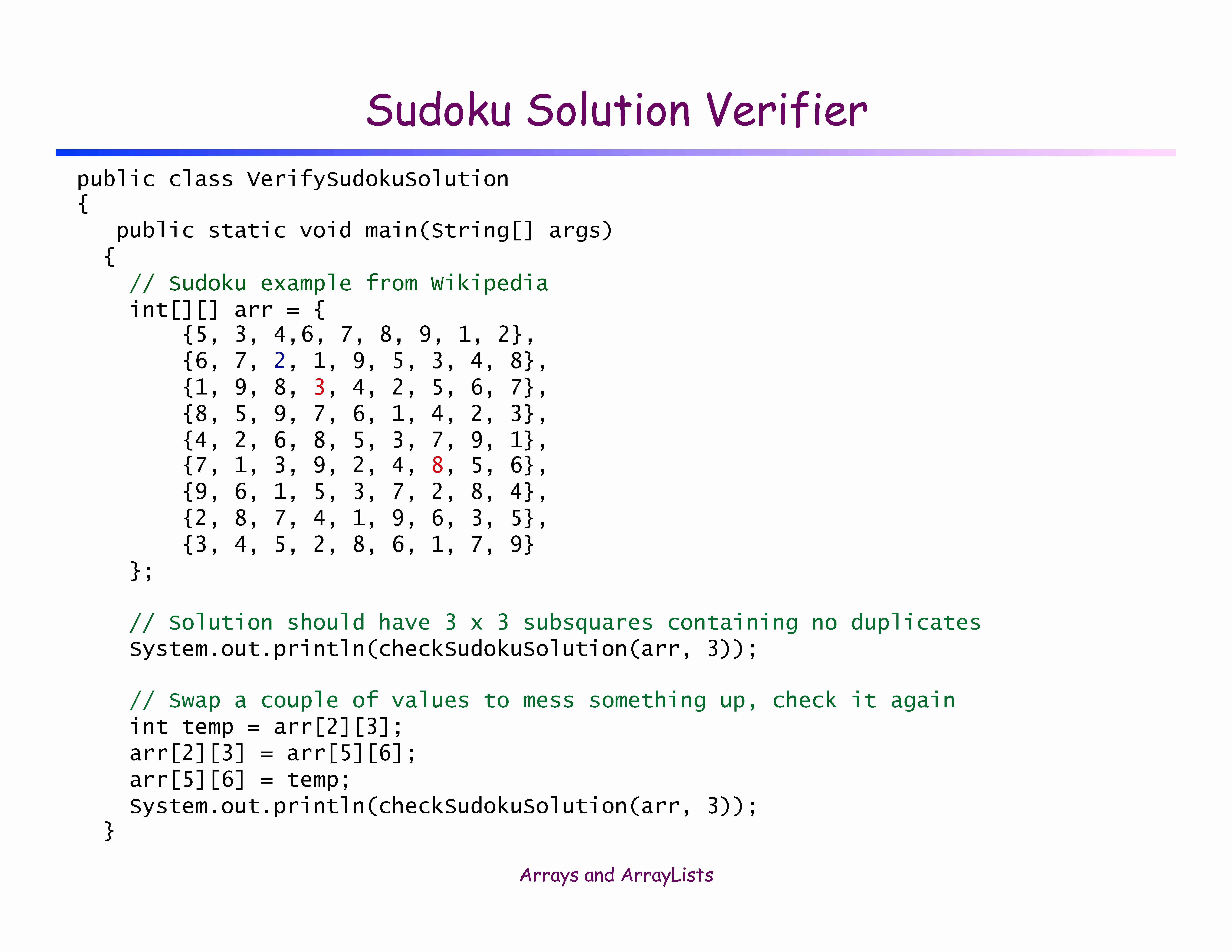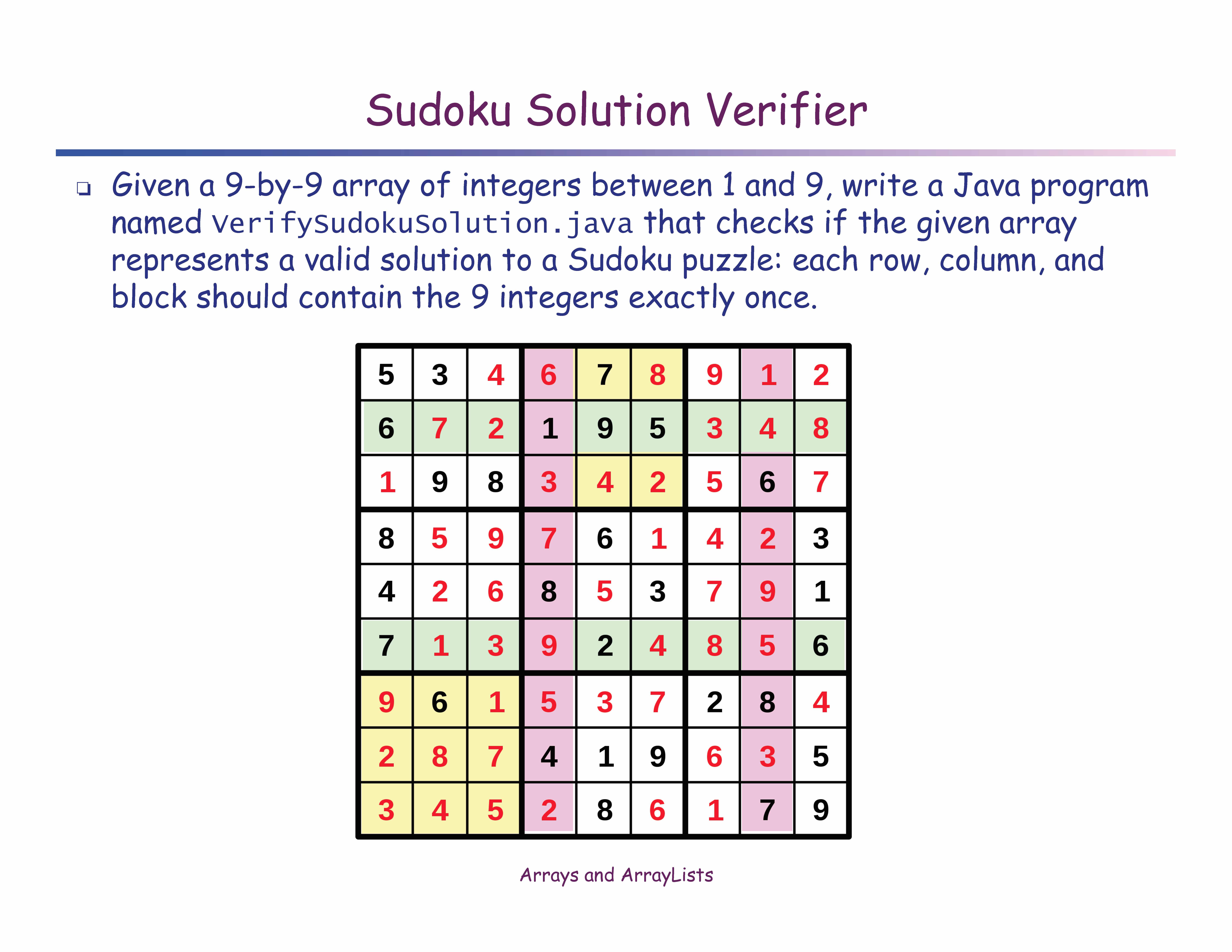 Sudoku Solution Verifier â Given a 9-by-9 array of integers b...