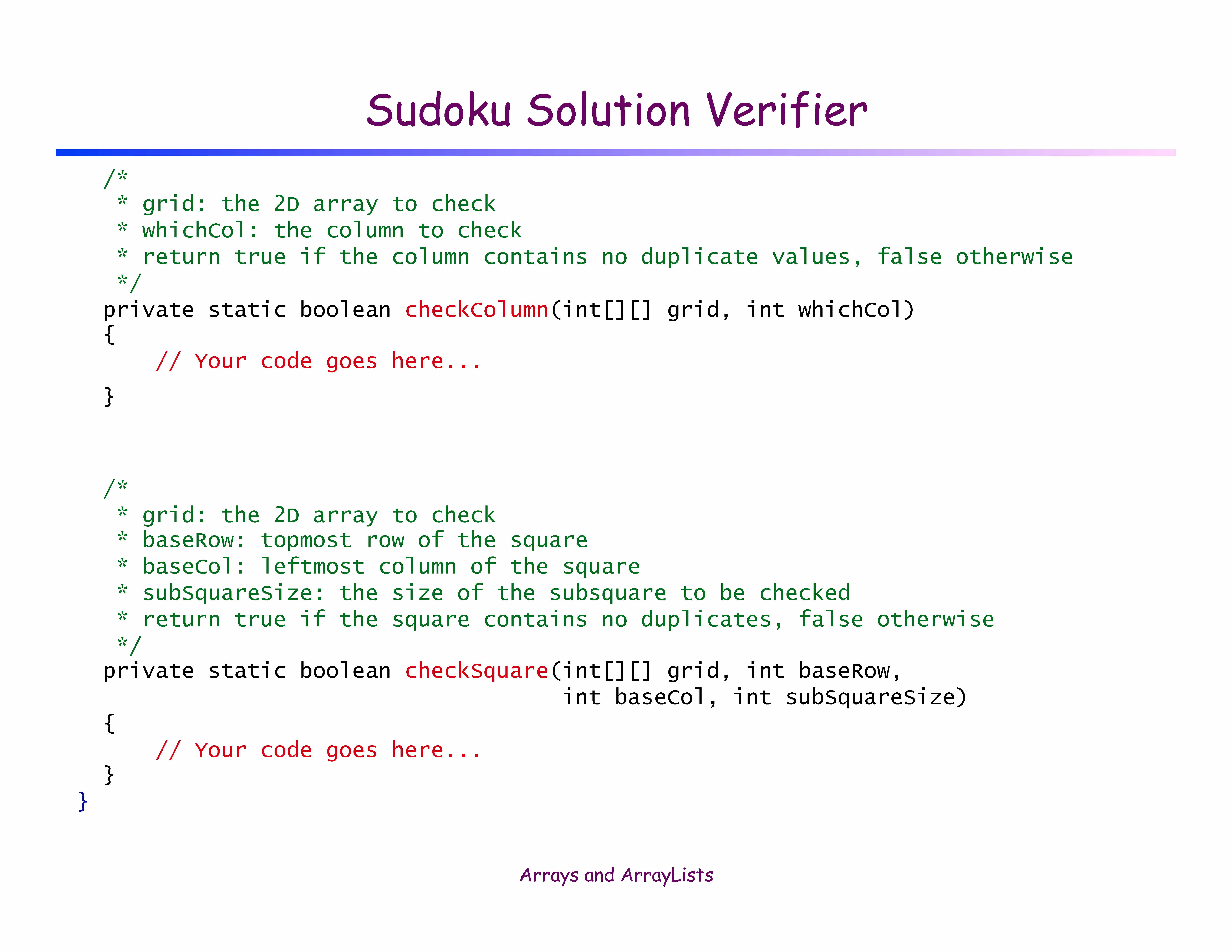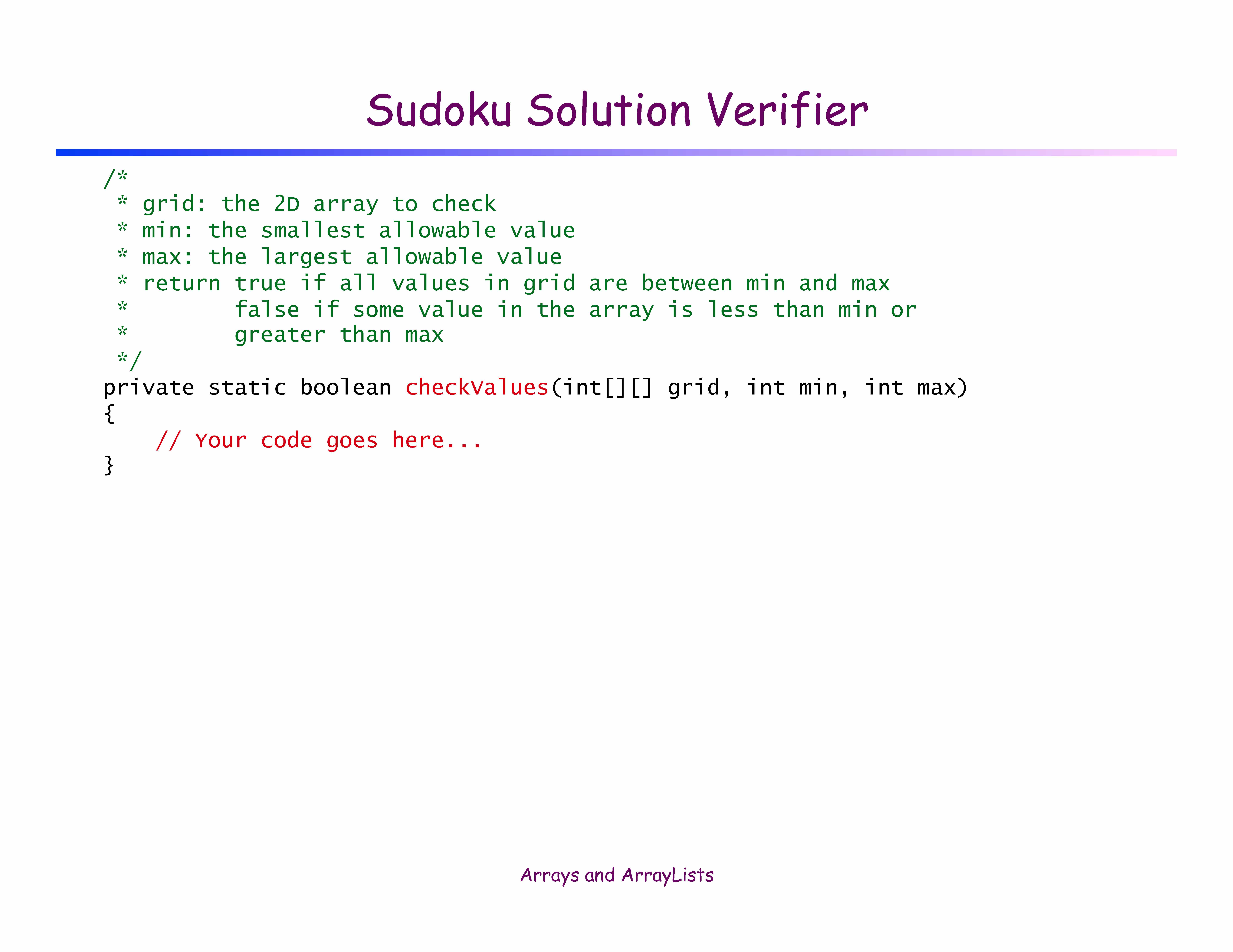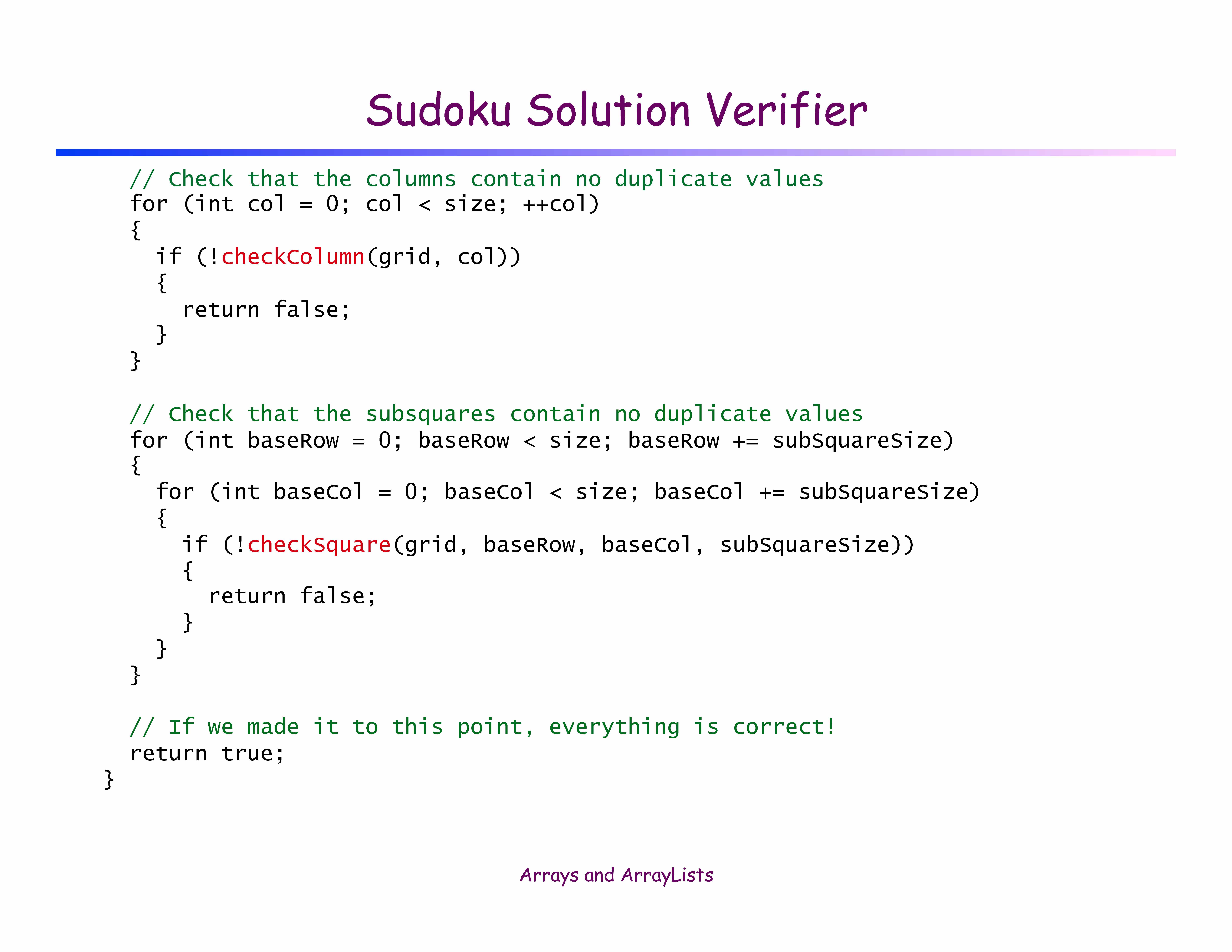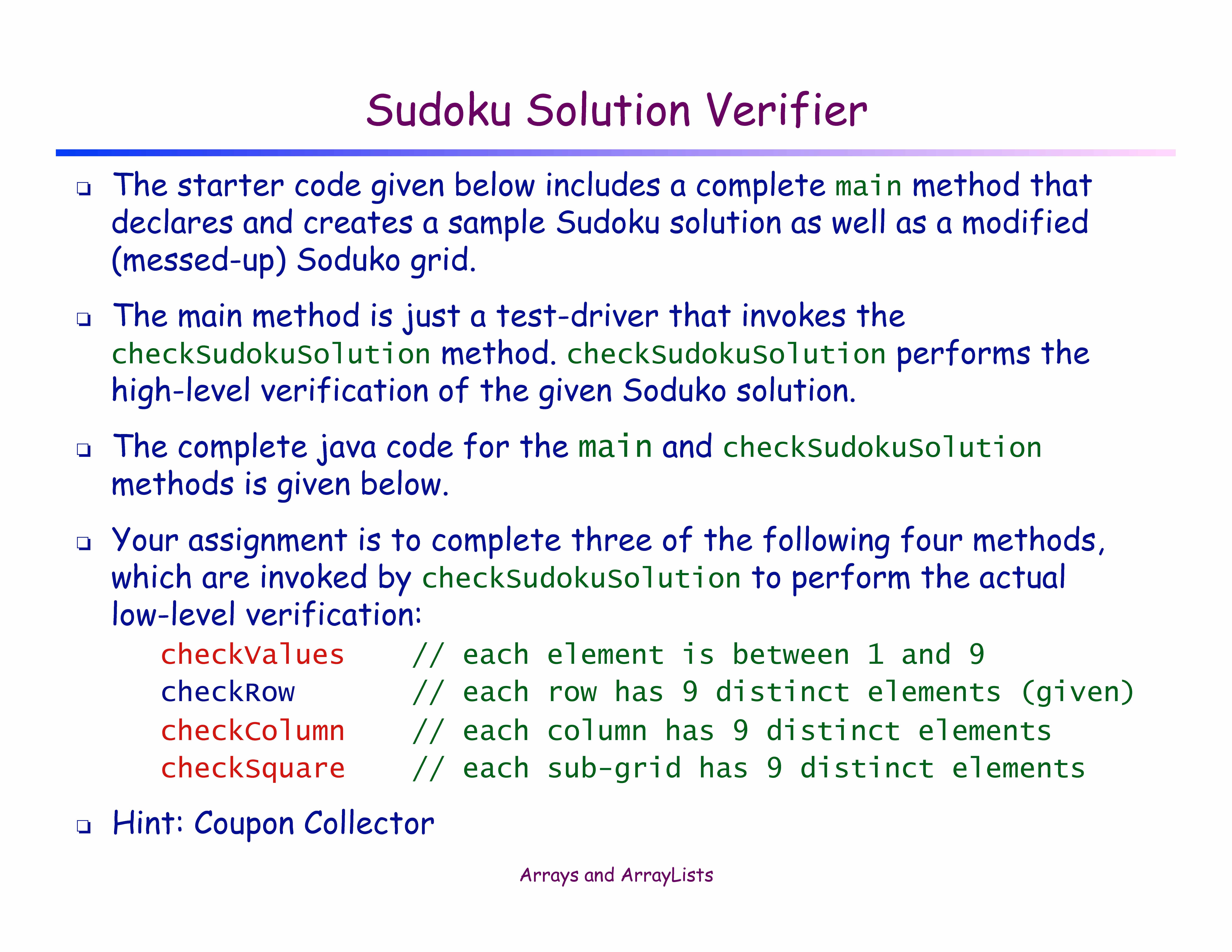 Sudoku Solution Verifier â Given a 9-by-9 array of integers b...