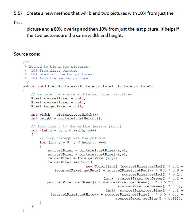 5.5 Create a new method that will blend two pictures with 10% from...