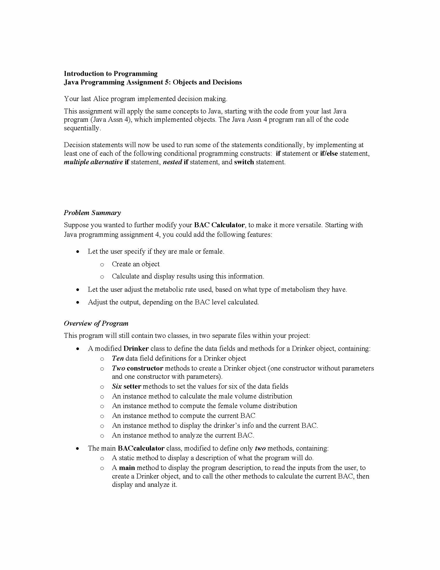 Introduction to Programming Java Programming Assignment 5: Objects...