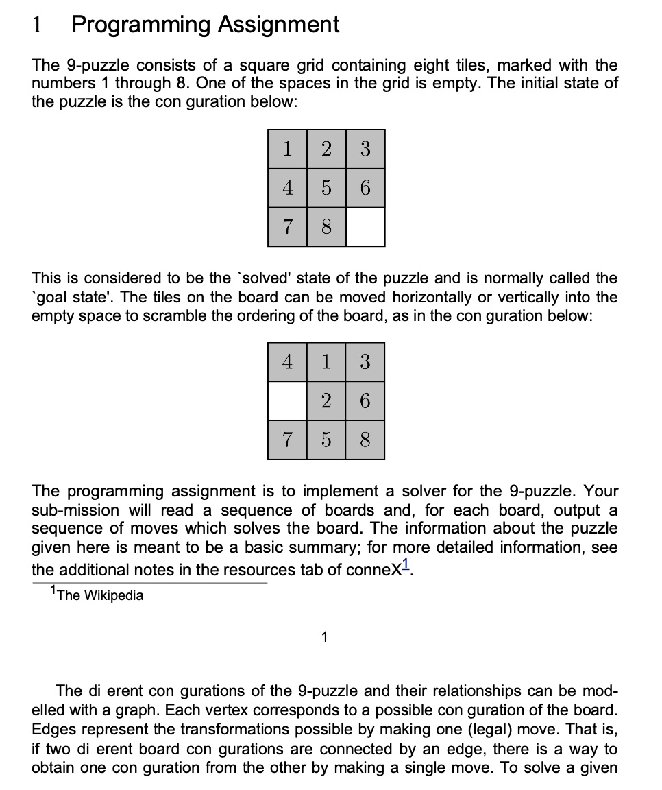 1 Programming Assignment The 9-puzzle consists of a square grid c...
