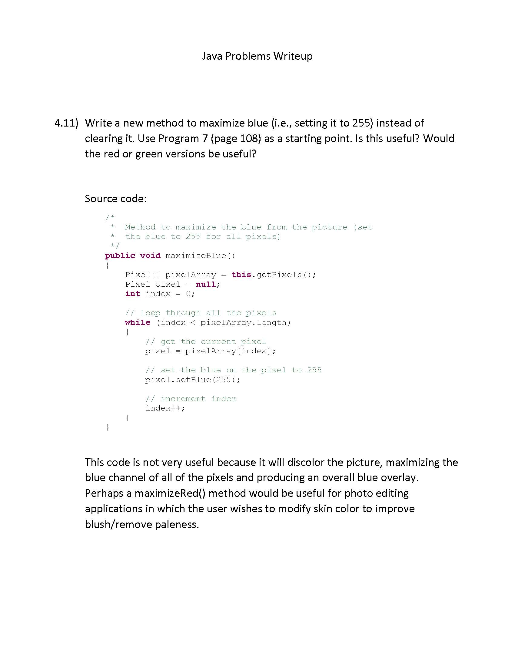4.11 Write new method to maximize blue (i.e., setting it to 255) in...