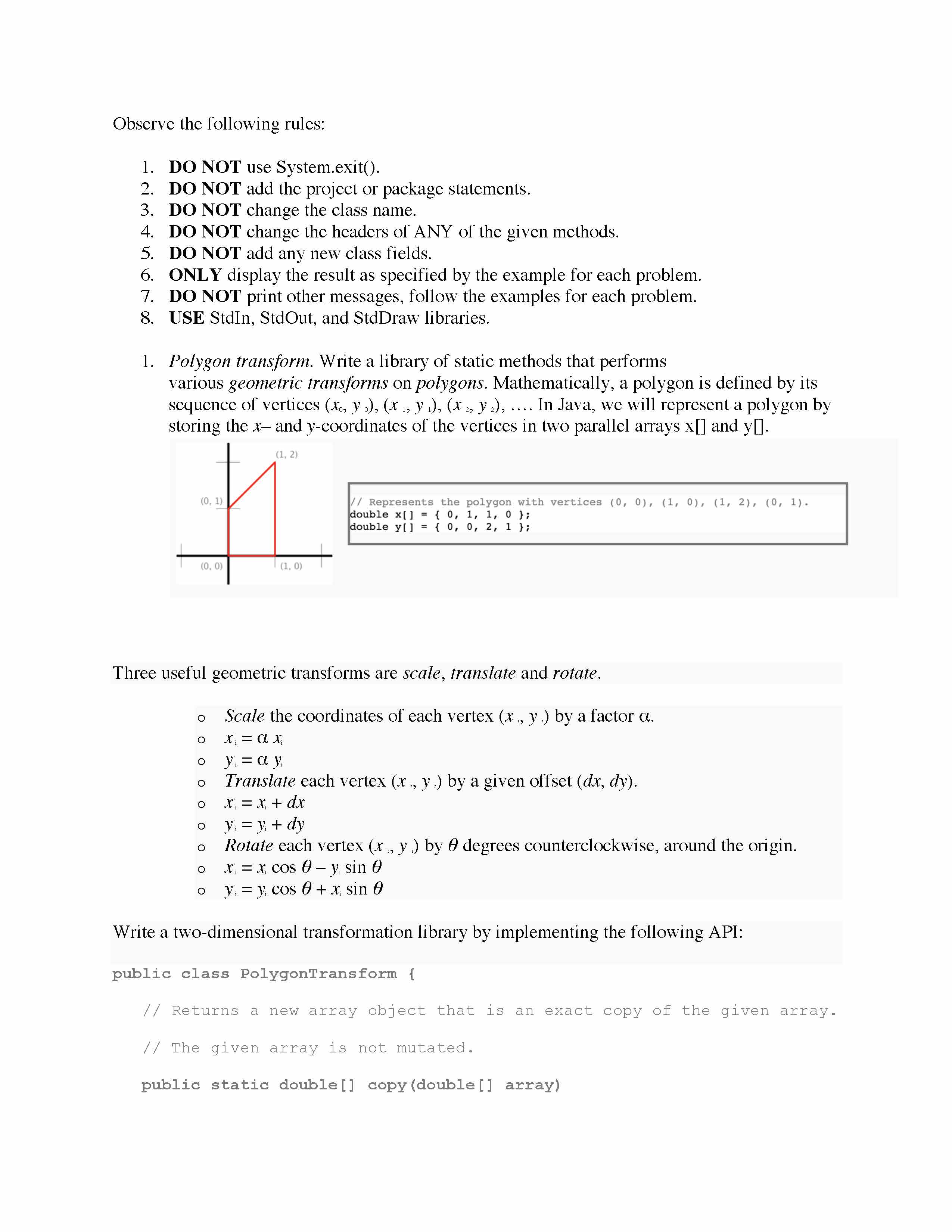 Observe the following rules: 1. DO NOT use System.exit(). 2. DO N...