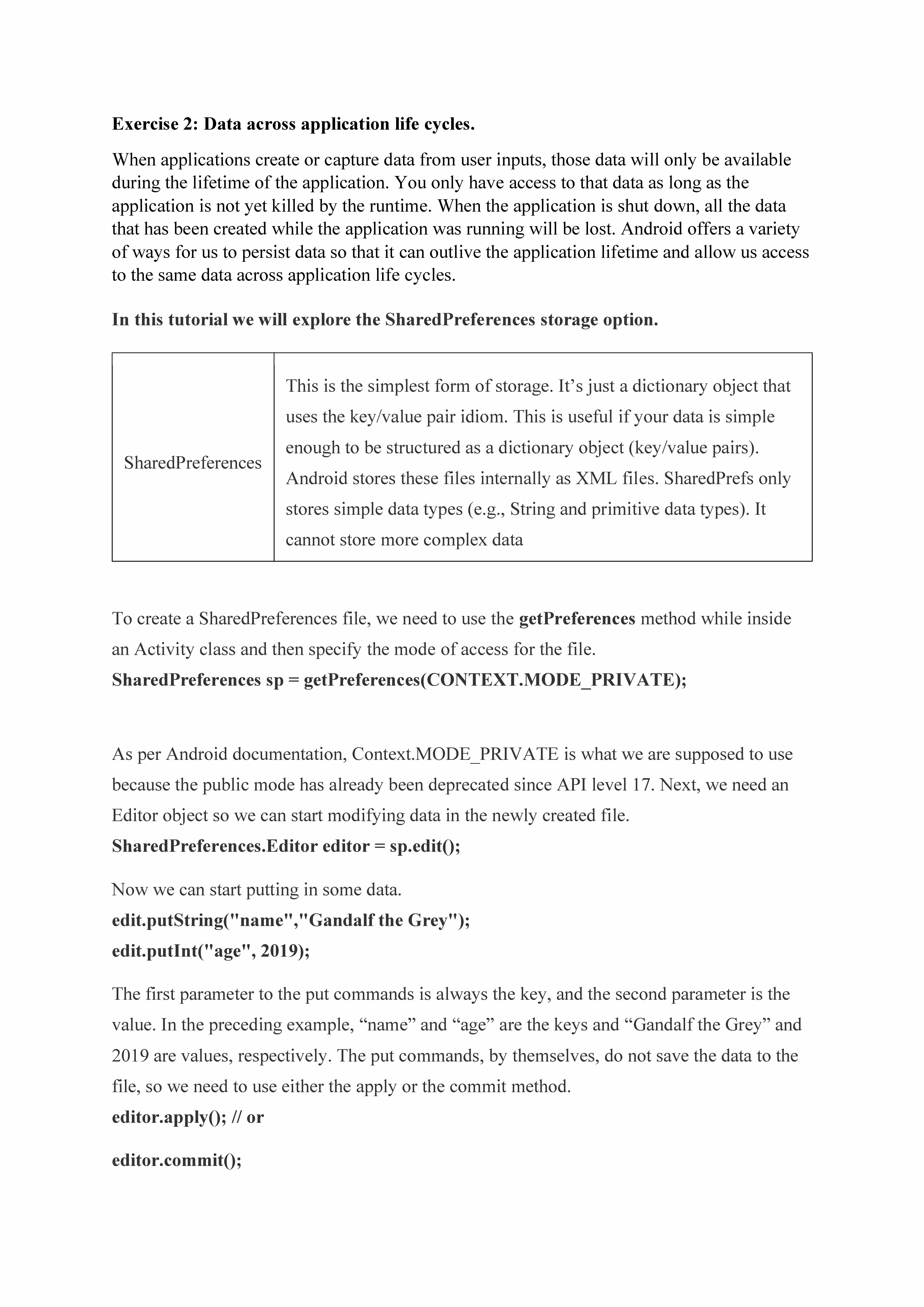 Exercise 2: Data across application life cycles. When applications...